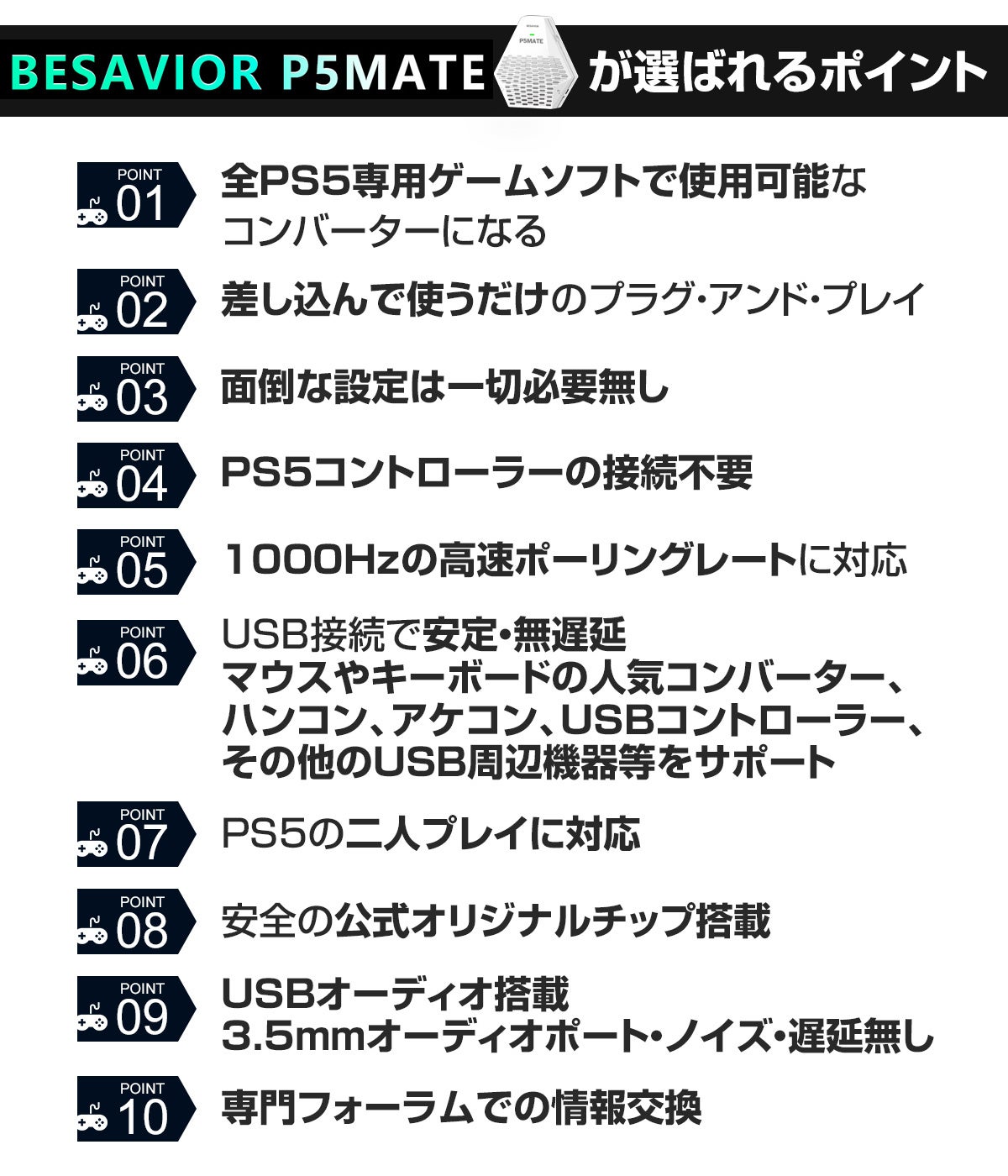 「Besavior P5 Mate」は2024年最新版のPS5用ゲーミングコンバーターです。