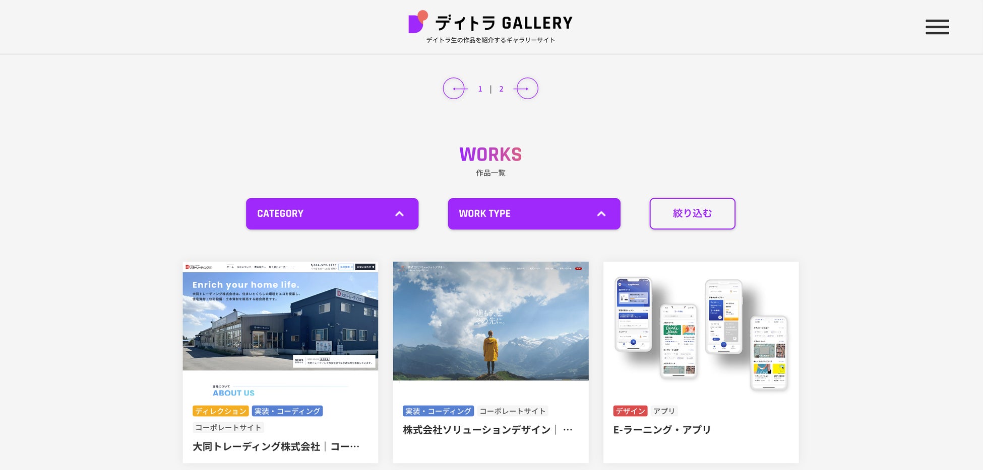 DTP、コーポレートサイト、LP、EC、動画など、多岐にわたるジャンルの作品を掲載。