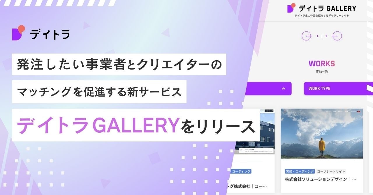 株式会社デイトラ(本社:東京都豊島区、代表取締役:大滝昇平、以下 デイトラ)は、この度、新サービス「デイトラGALLERY」(https://daytora.com/gallery)をリリースいたしました。当サービスは、発注したい事業者とクリエイターのマッチングを促進させる、新たなプラットフォームとなります。