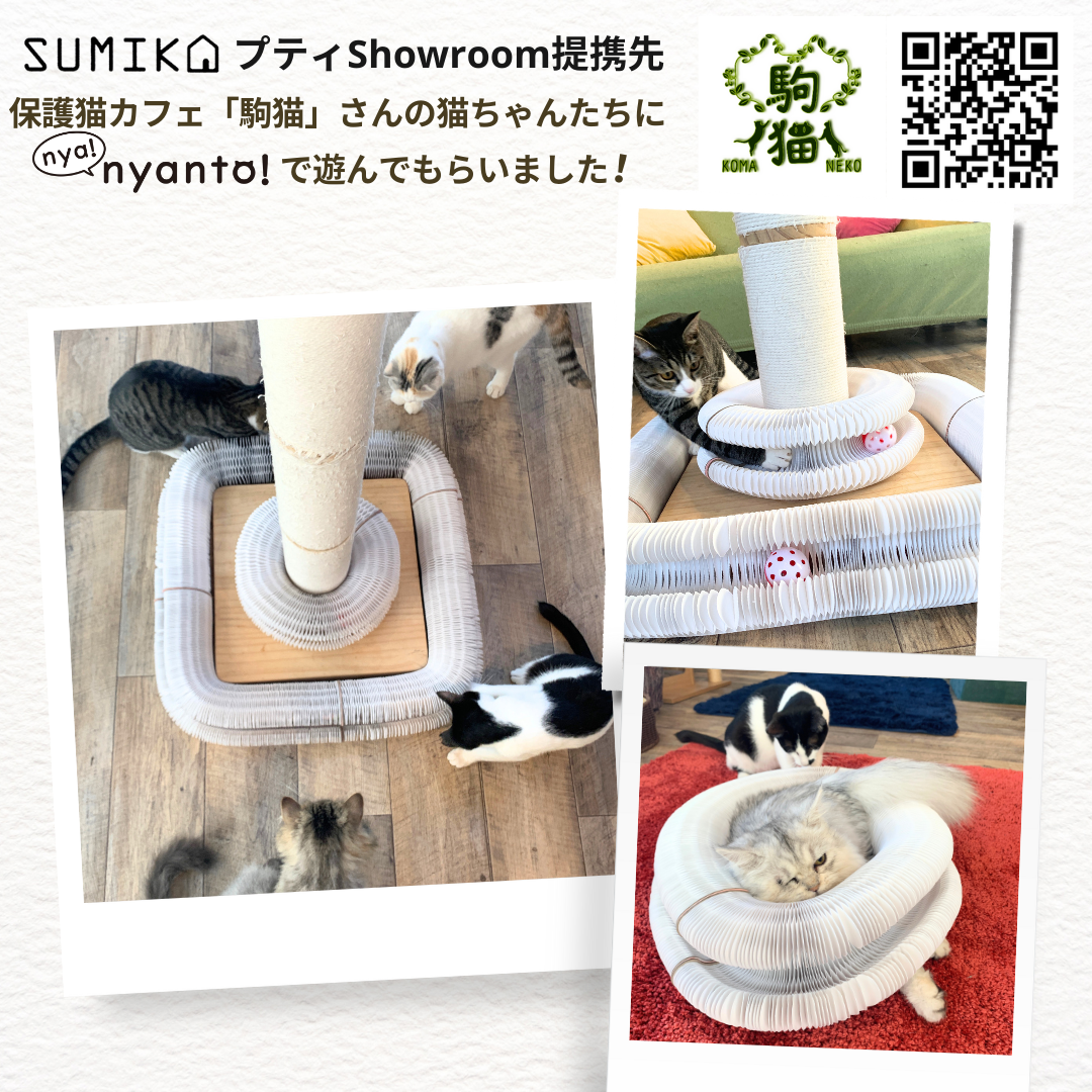 発売を前に、SUMIKA プティショールーム提携先の保護猫カフェ「駒猫」さんの猫ちゃんたち、通称”駒ニャンズ”に一足早く遊んでいただきました。