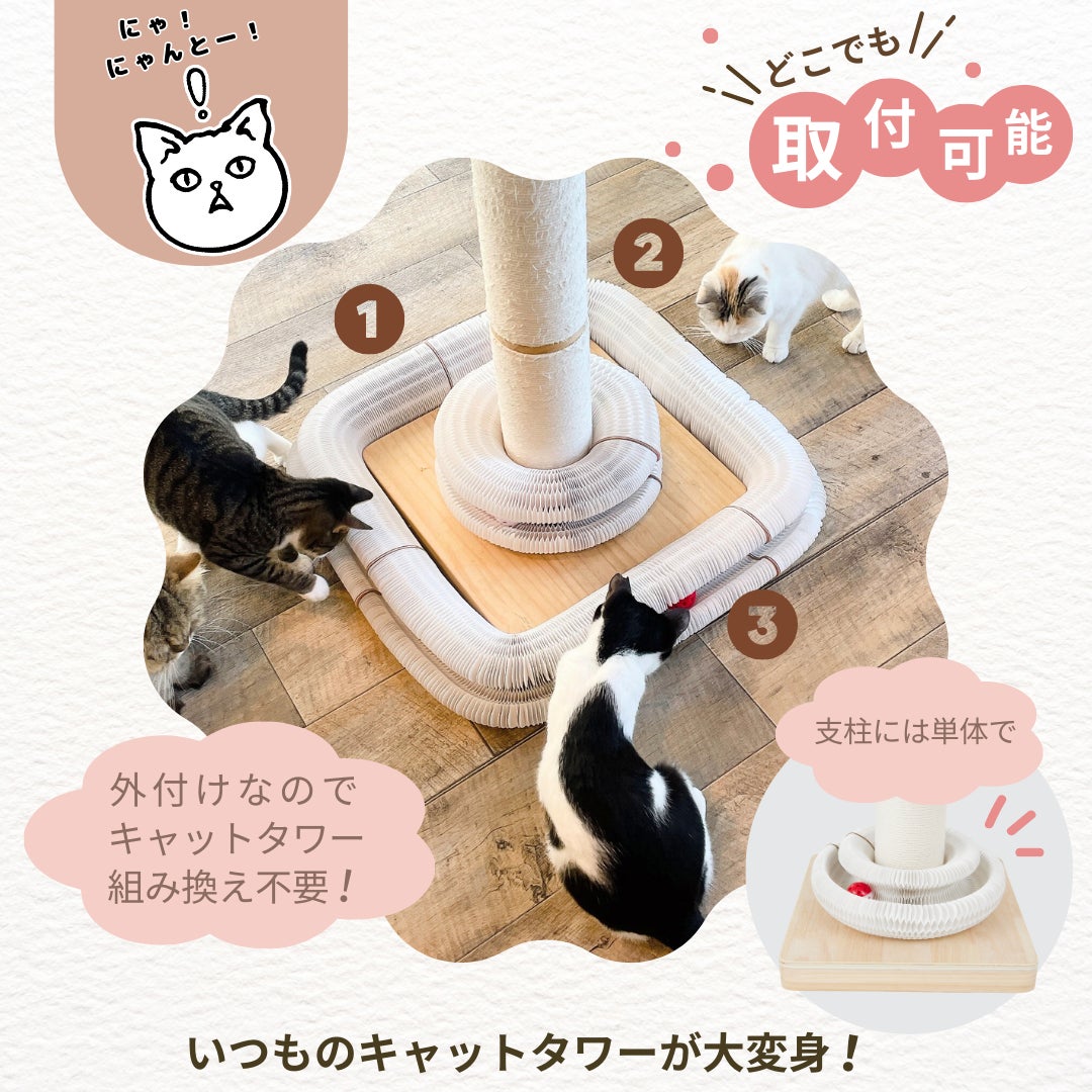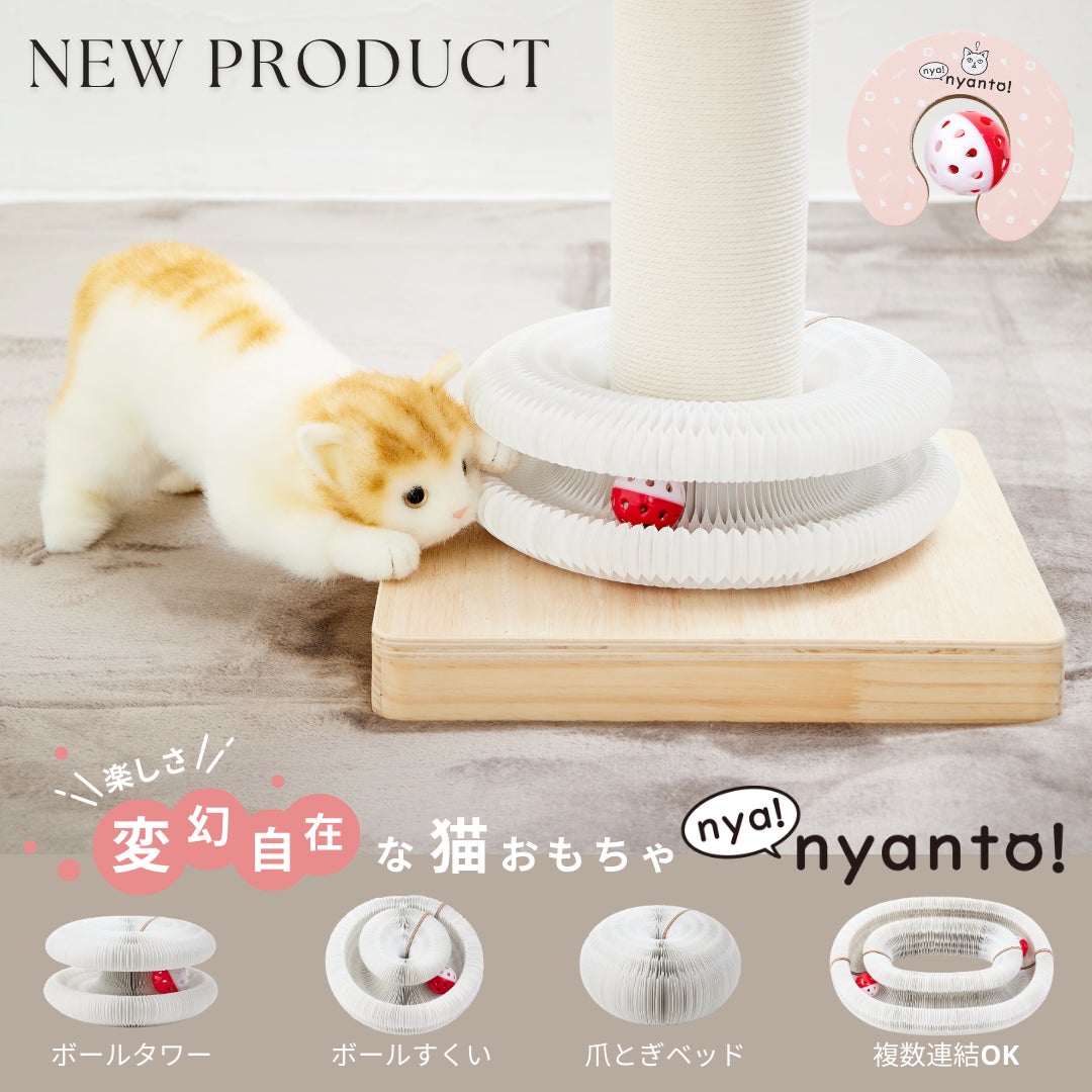 ★新商品発売記念キャンペーン開催中★キャットタワーに外付けもデキる?!丸めて・連結して・楽しさ無限大♪変幻自在の猫ちゃん用おもちゃ『nyanyanto!:ニャニャント!』新登場