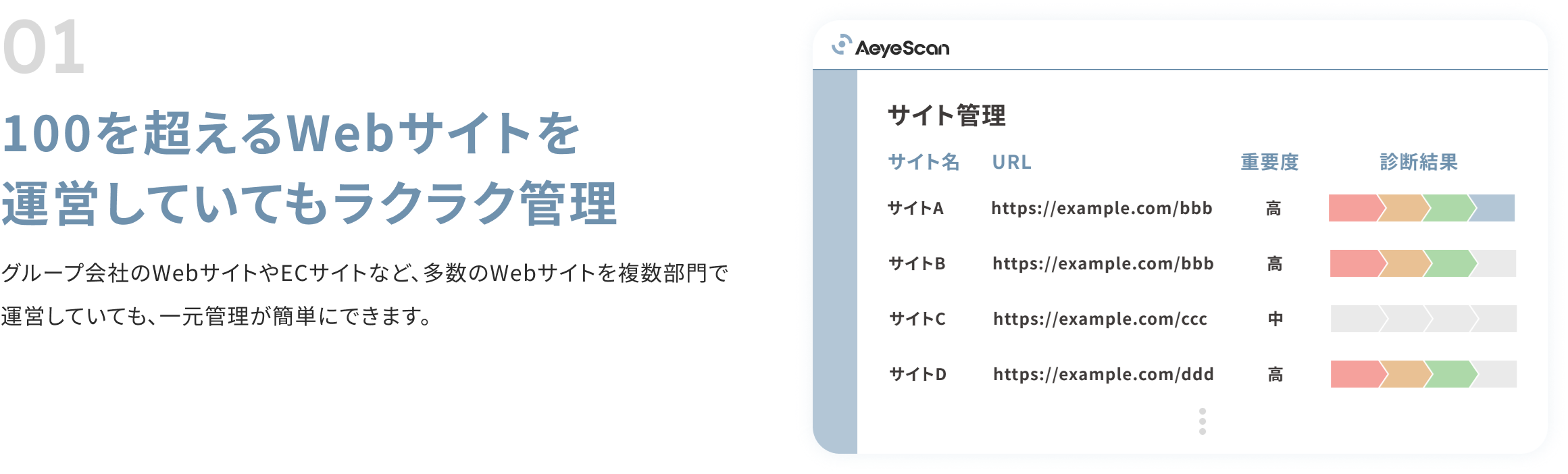 診断対象Webサイトの棚卸や把握など、一元管理の実施