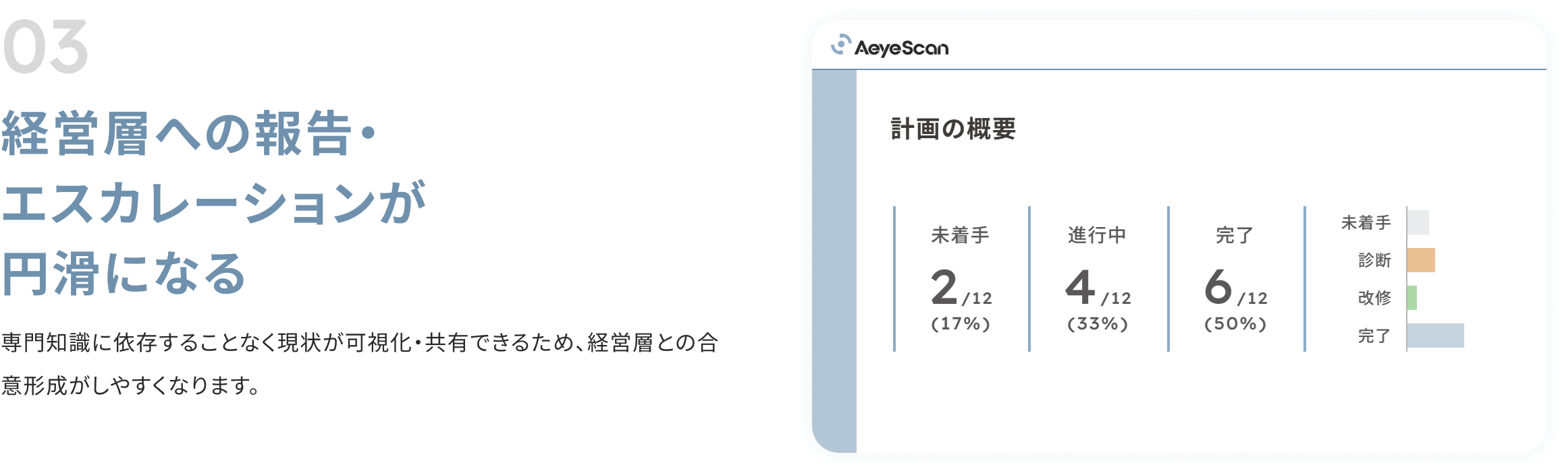 診断実施状況や、改修進捗の可視化・把握