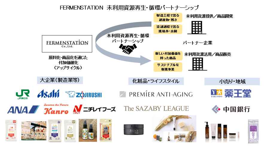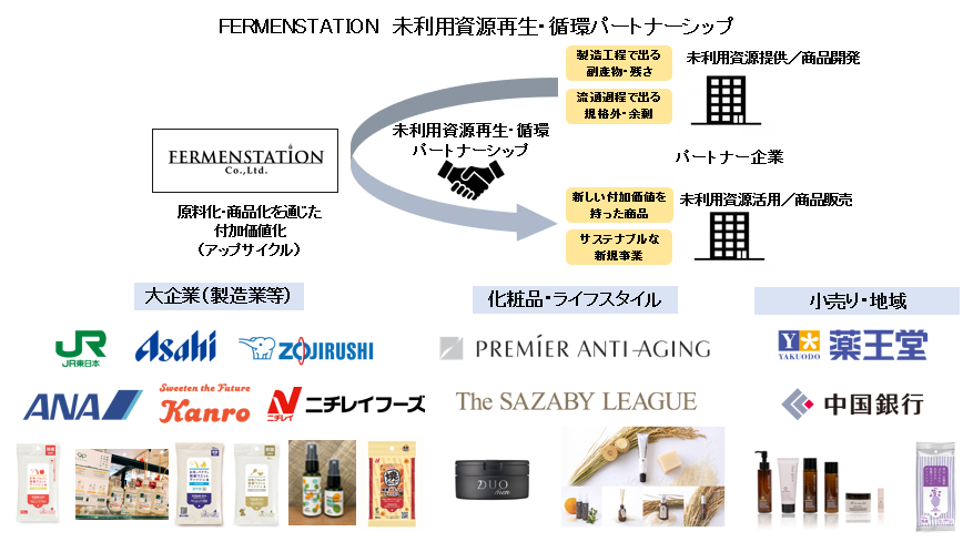 ファーメンステーションでは、今後も未利用資源の再生・循環パートナーシップの取り組みを拡大し、貴重な未利用資源を有する企業(食品・飲料メーカー等)や、そのアップサイクルした原料や商品を展開可能な企業(化粧品・生活雑貨メーカー、小売り等)との連携を推進してまいります。