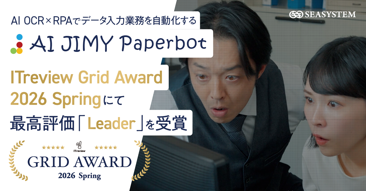 AI OCR×RPAでデータ入力業務を自動化する「AI JIMY Paperbot」が「ITreview Grid Award 2026 Spring」にて最高評価「Leader」を受賞