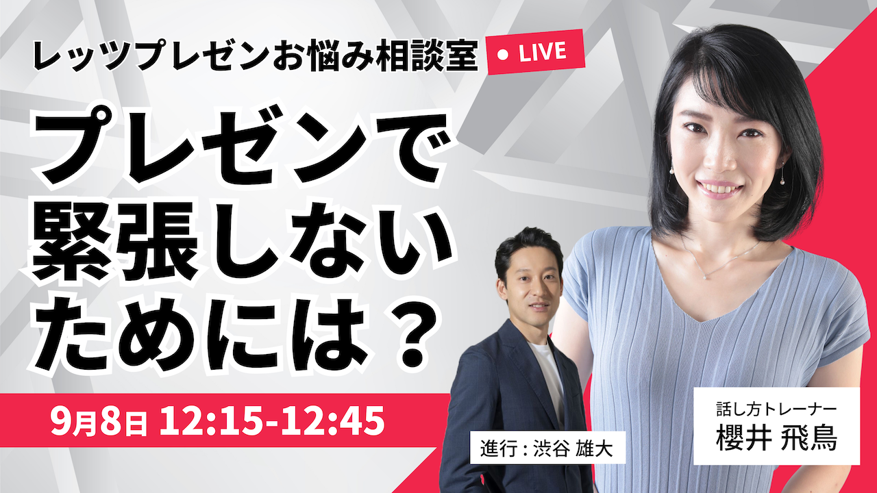 そんなプレゼンの緊張に関する悩みについて、プレゼン講師の櫻井と渋谷がお答えしていきます。