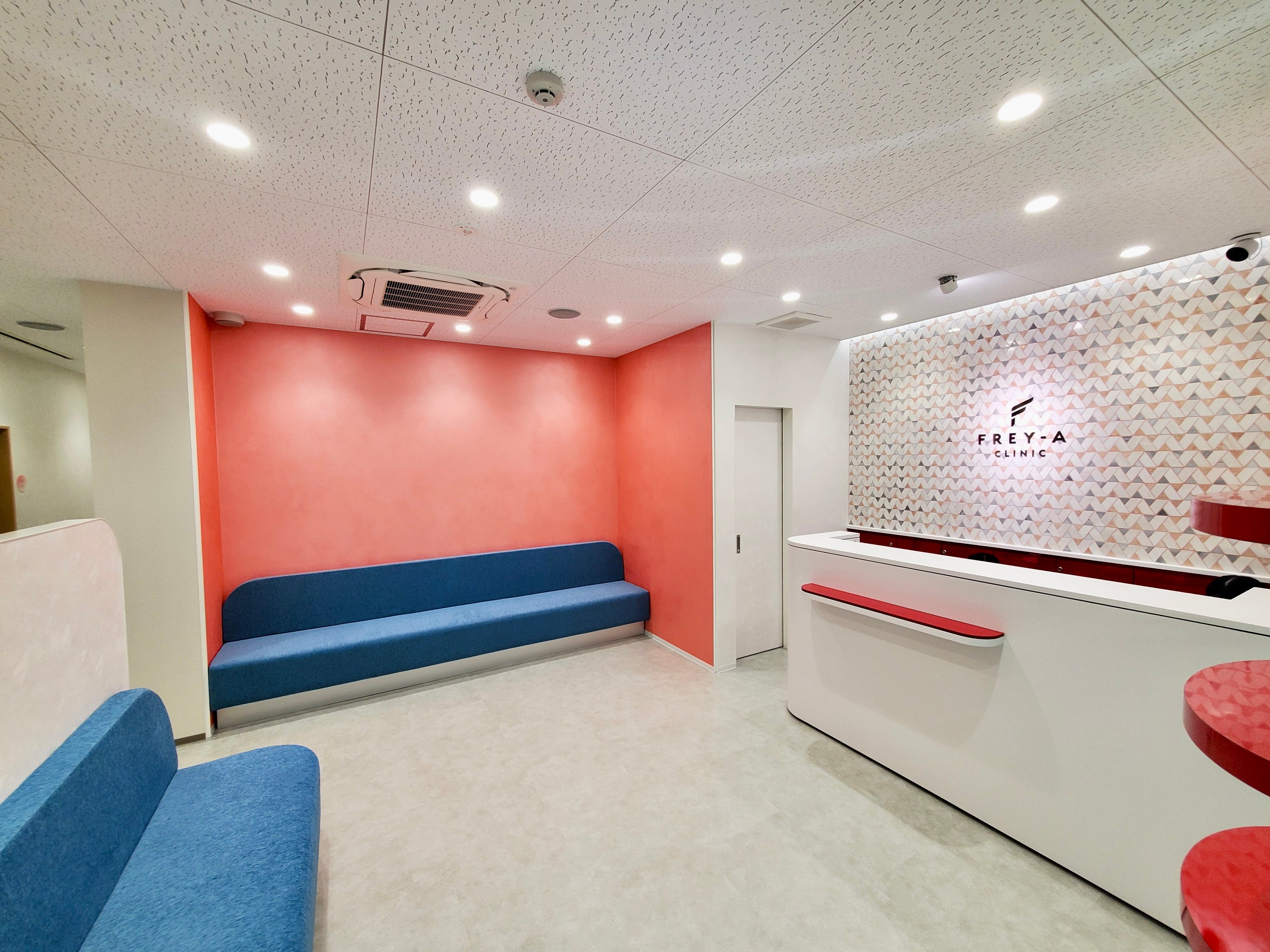 フレイアクリニック沖縄那覇院は「県庁前駅」より徒歩5分でアクセスが可能で、学校帰りの学生も通いやすい好立地です。施術室は4床から12床に増床し、より多くの患者様にご利用いただけるようになりました。移転拡大に伴い一新した内装には、フレイアクリニックを通じて明るい気持ちになってほしいという思いが込められています。