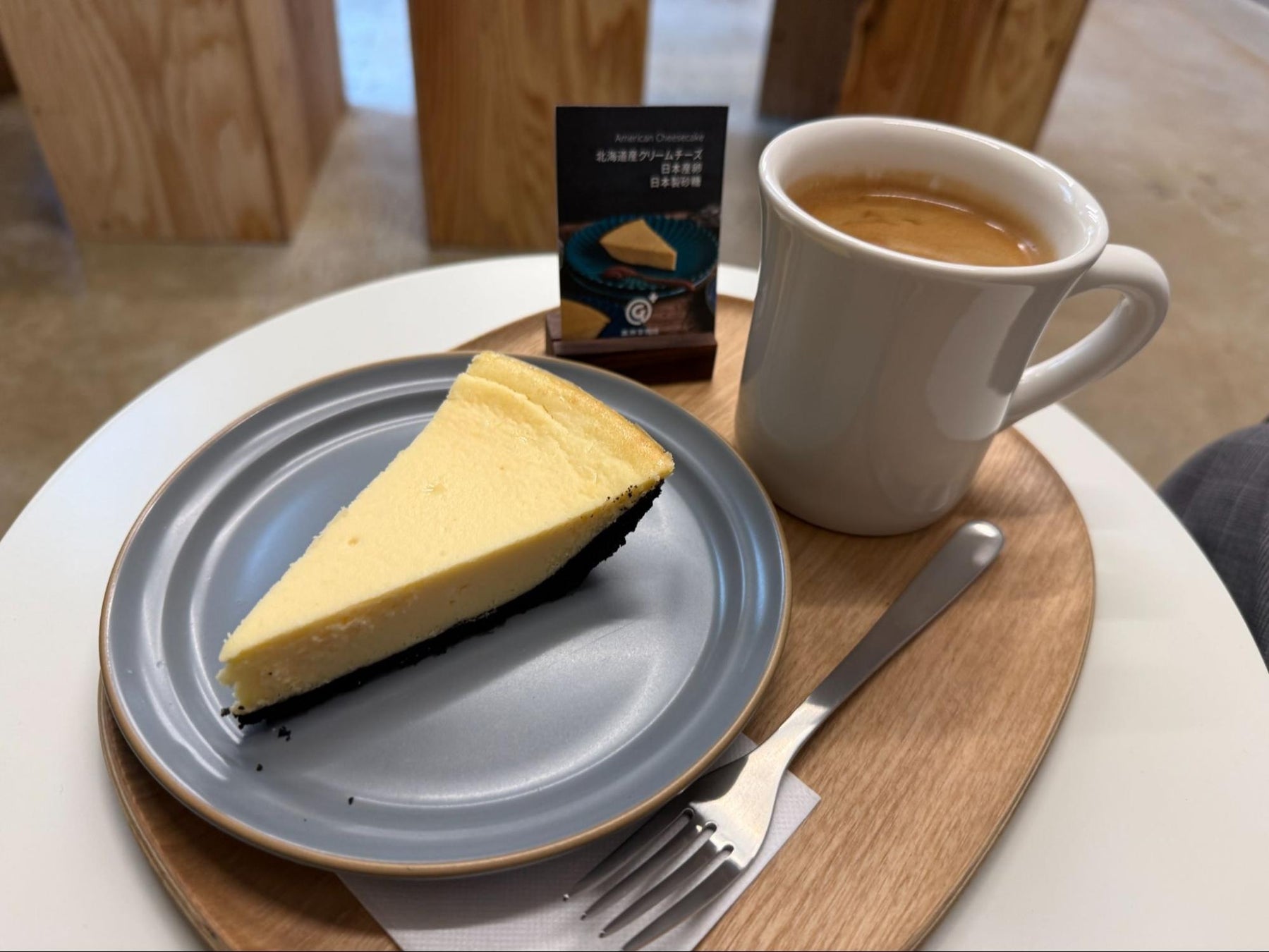 看板メニューのチーズケーキは、北海道産チーズにこだわって作られた自家製。しっとりとした口当たりで、優しい甘さのケーキでした。