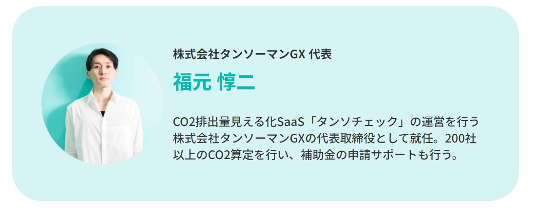 本セミナーでは、株式会社タンソーマンGXの代表取締役福元氏が登壇。