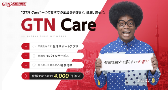 生活相談・モバイル・補償(ケガによる入院、賠償責任)がセットの外国人向け安心パッケージ【GTN Care】が登場