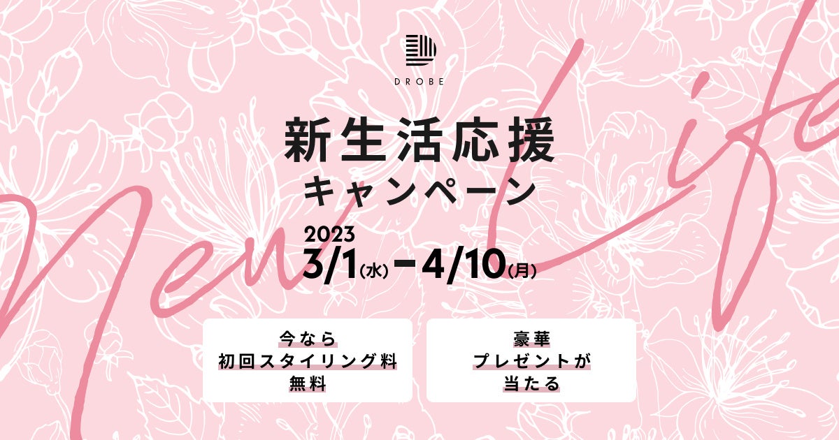 パーソナルスタイリングサービス「DROBE(ドローブ)」を展開する株式会社DROBE(代表取締役 CEO:山敷守)は、3月を迎え、卒業や進級、転勤など、新しい一歩を踏み出す皆さまを応援すべく、「新生活応援キャンペーン」を実施いたします。