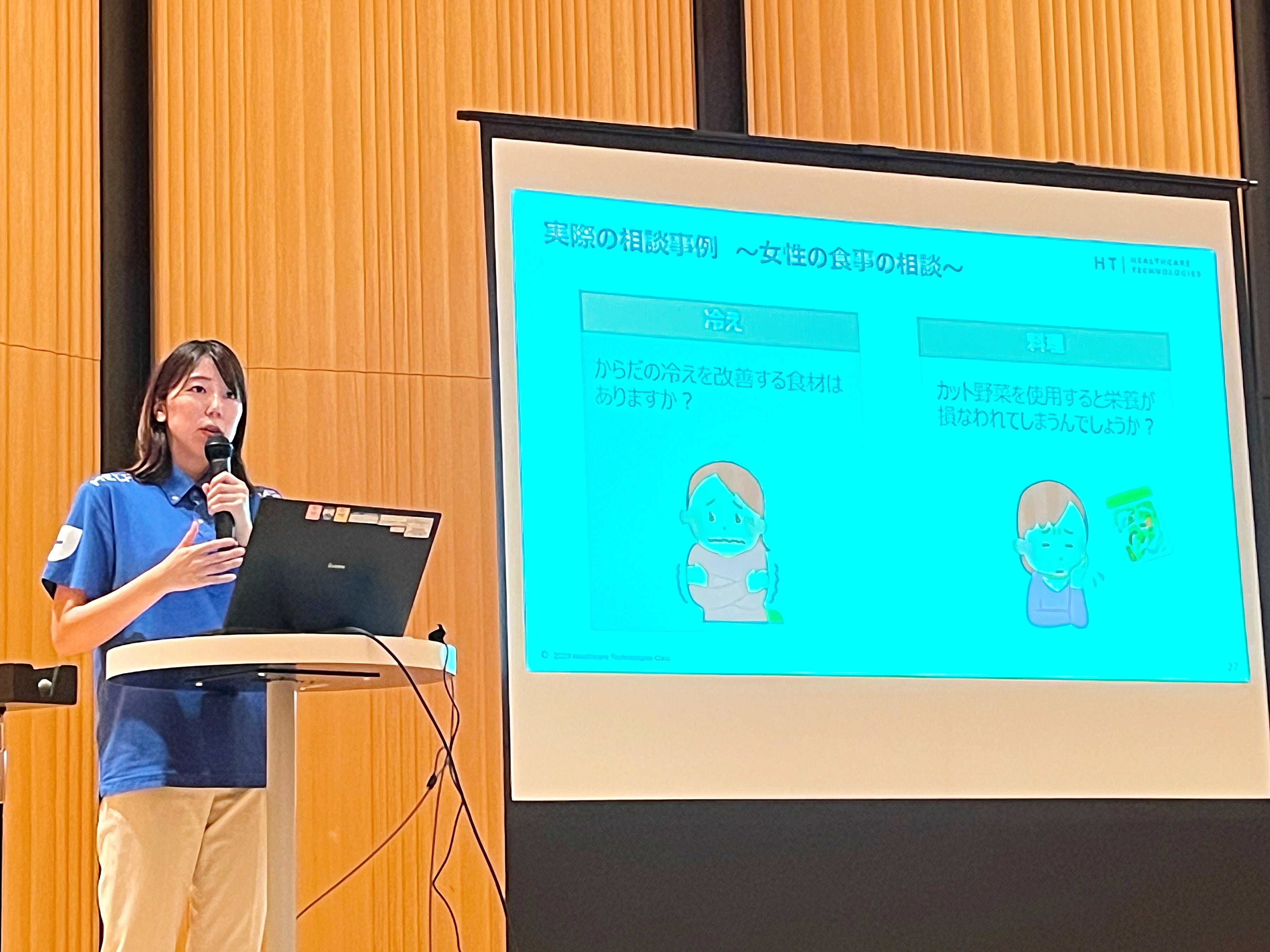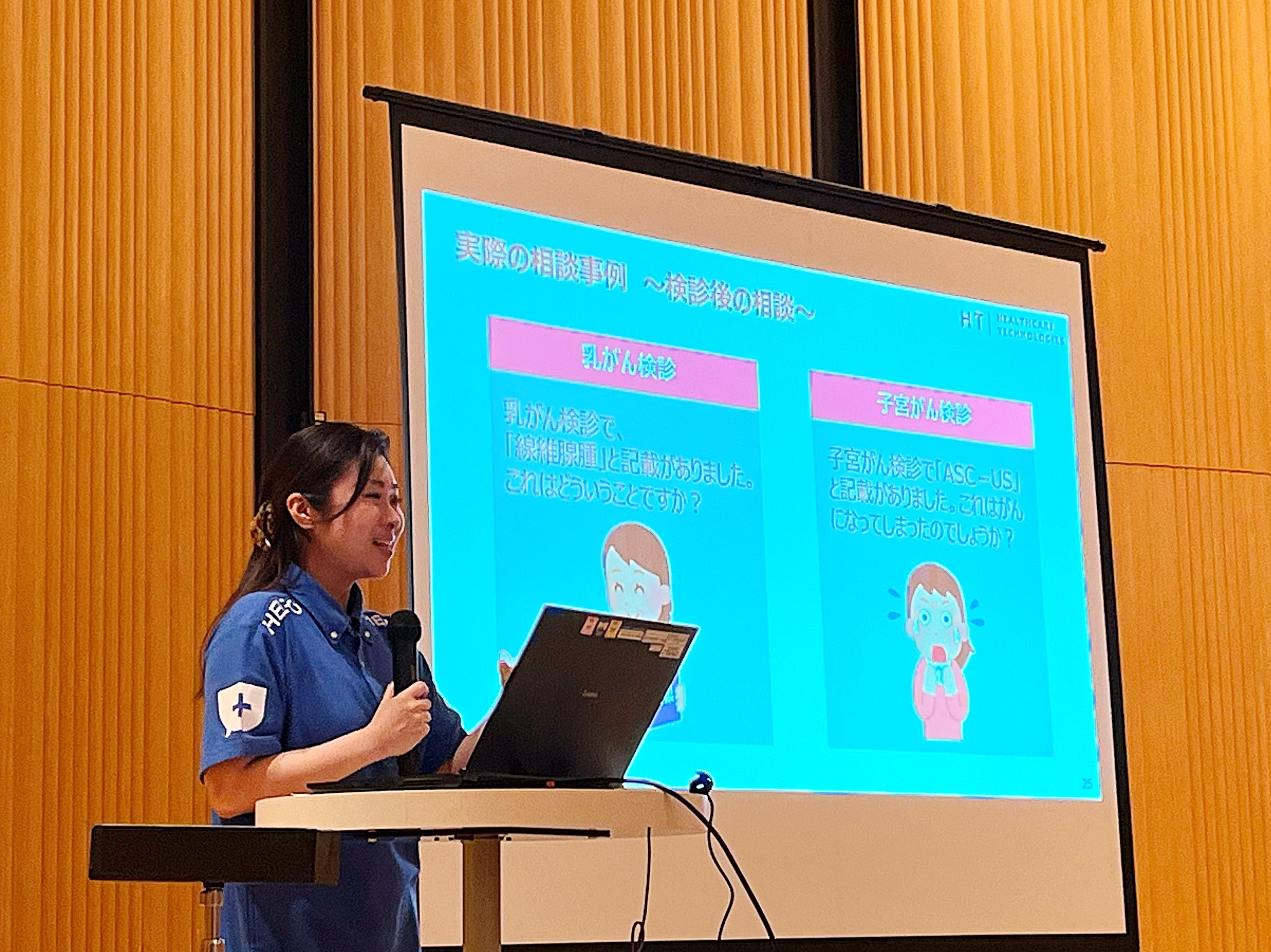 今回のイベントでは、6月23日から6月29日までの「男女共同参画週間」に合わせ、いわき市民の皆さまの男女共同参画についての意識醸成を図ることを目的に実施されました。「健康に関するショートセミナー」では、ヘルスケアテクノロジーズに所属し、「HELPO」の健康医療相談窓口も担当している看護師・保健師・管理栄養士の3名が講師として登壇し、参加する市民の方に対して「女性に多い病気と検診」「こどもの病気」「生理痛・PMS」「女性に必要な食事管理」「こどもの食事」の5つのテーマについてお話しました。セミナーでは、各テーマについていわき市民の方の傾向を交えつつ、セルフケア・ホームケアから受診の目安、普段の生活で気を付けるべきことなどを中心に、医療者ならではのアドバイスをお伝えしました。加えて、実際に「HELPO」に寄せられた相談も紹介しながら、日々生じる健康の悩み・疑問について、気軽に相談してほしいと呼びかけました。