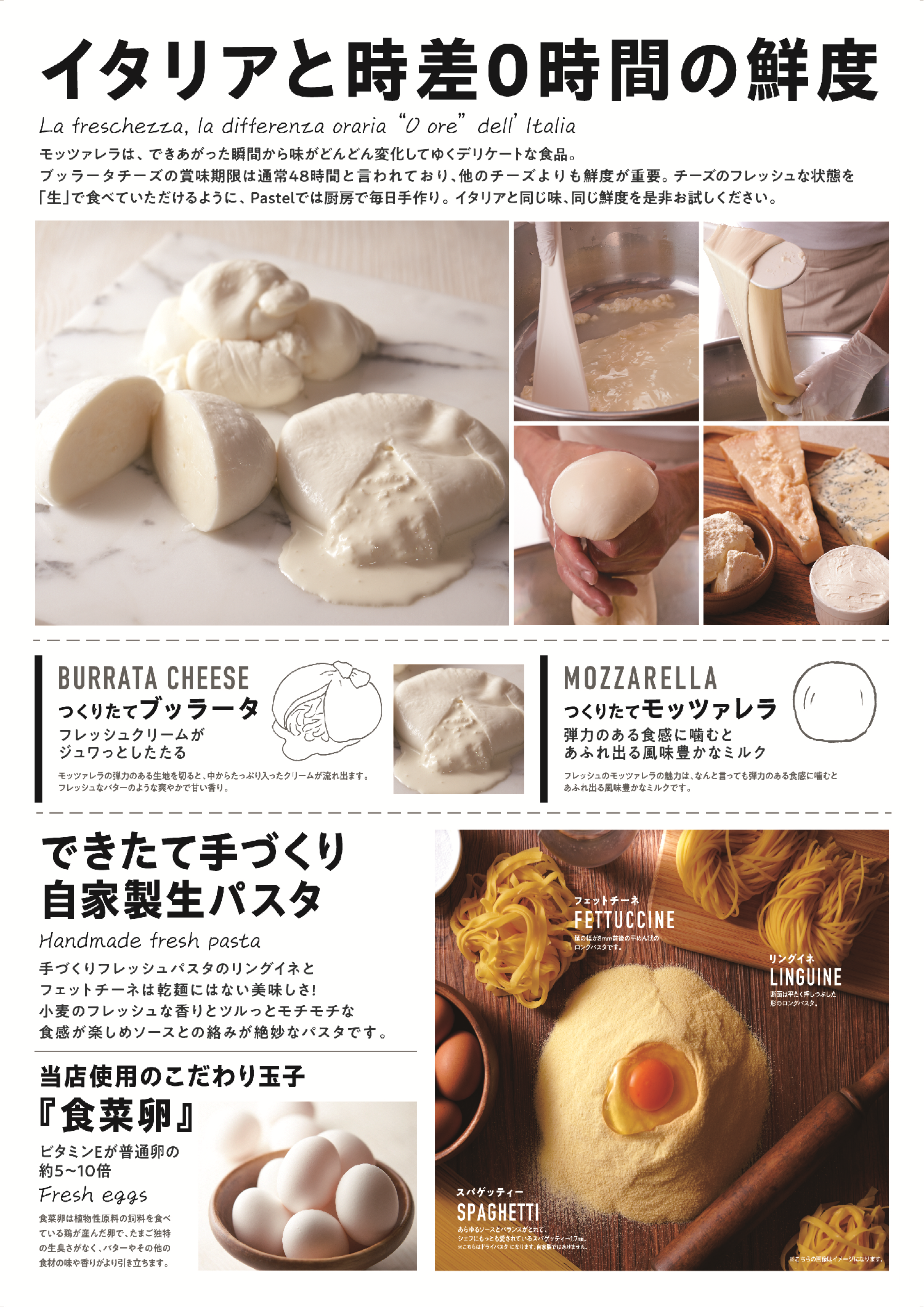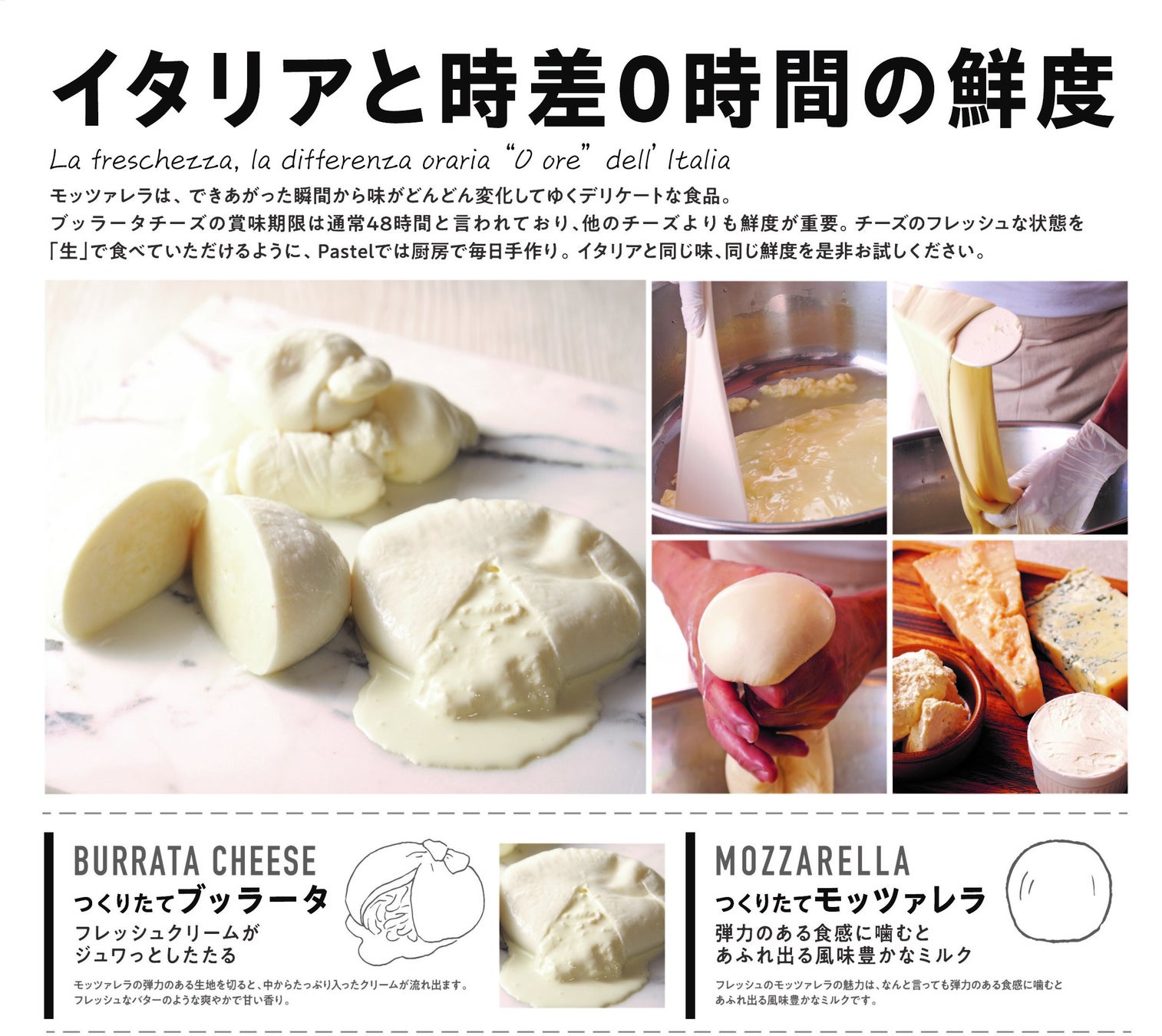 『CHEESE&PASTA Pastel』では、毎日、手づくりのフレッシュなブッラータチーズをお楽しみいただけます!