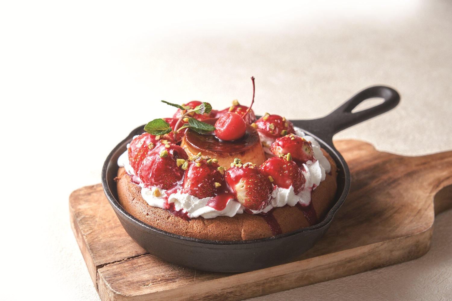 苺のスフレパンケーキonプリンアラモード 1,299円(税込1,429円)