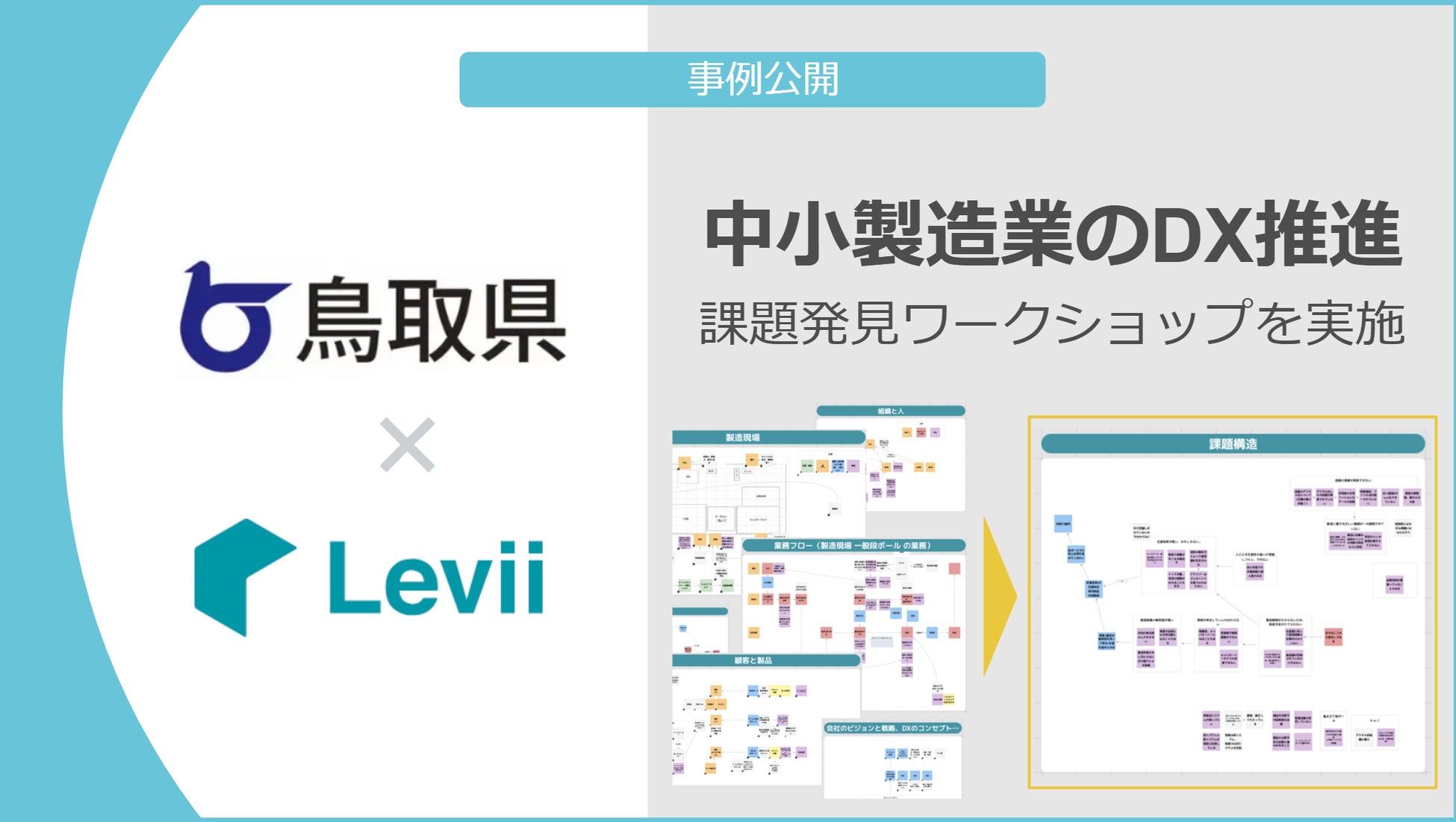 構造化思考を用いた組織開発・人材育成・ツール提供等を手がける株式会社レヴィ(以下レヴィ)は、鳥取県庁の産業未来創造課(以下鳥取県庁)と連携し、県内の中小製造業のDX(デジタルトランスフォーメーション)推進を支援した事例を公開いたします。「DX推進のための課題発見ワークショップ」を通じて中小製造業が抱える課題を洗い出して構造化・可視化することで本質的な問題と解決のためのステップが明確化され、参加企業のDXへの取り組みが加速しました。また、ヒアリング・アンケートの結果から、DX推進において経営層と現場が共通認識を持つことの重要性や、構造化・可視化のスキルをもった人材育成の必要性が明らかになりました。