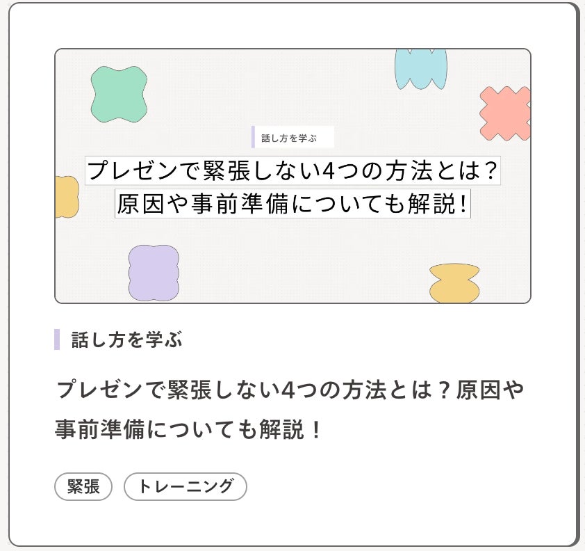 プレゼンテーション、スピーチ、日常会話に役立つコツを体系的に紹介し、読むだけで「話す力」を育てられるコンテンツを揃えています。