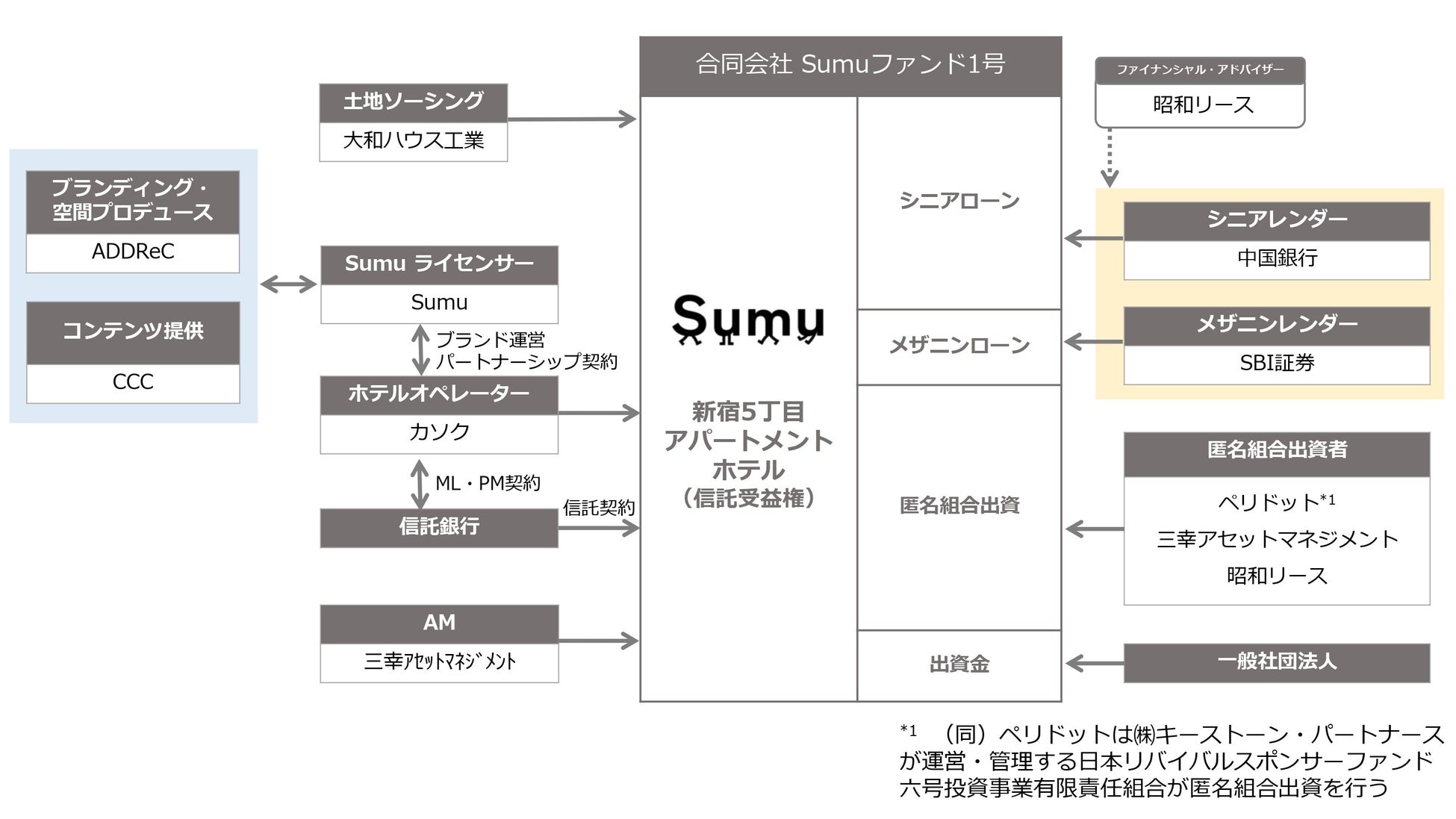 ・合同会社ペリドット(株式会社キーストーン・パートナース(東京都千代田区、代表取締役 堤智章・小山 聡)が運営・管理する日本リバイバルスポンサーファンド六号投資事業有限責任組合が匿名組合出資をおこなう会社、以下「ペリドット」) ・三幸アセットマネジメント株式会社(東京都中央区、代表取締役 武井 重夫、以下「三幸アセットマネジメント」) ・昭和リース |