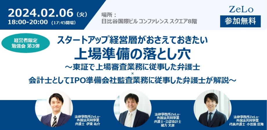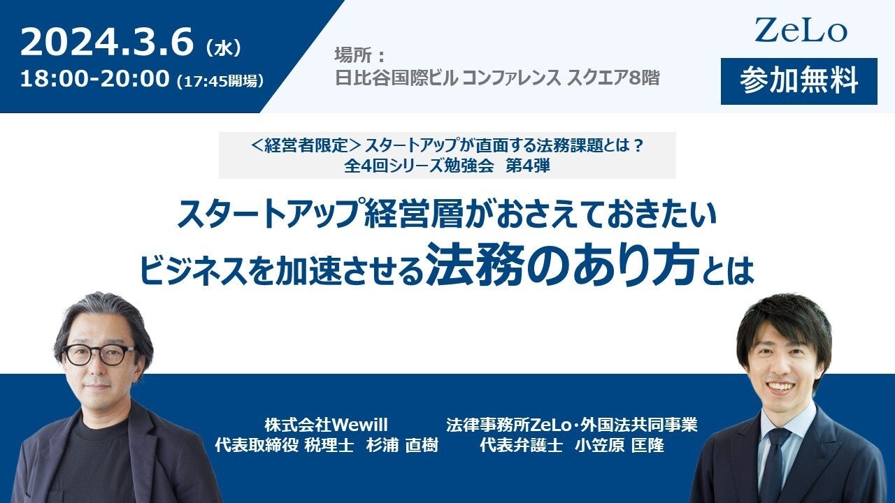 法律事務所ZeLoが開催するスタートアップ経営層向け無料イベント(オフライン開催)