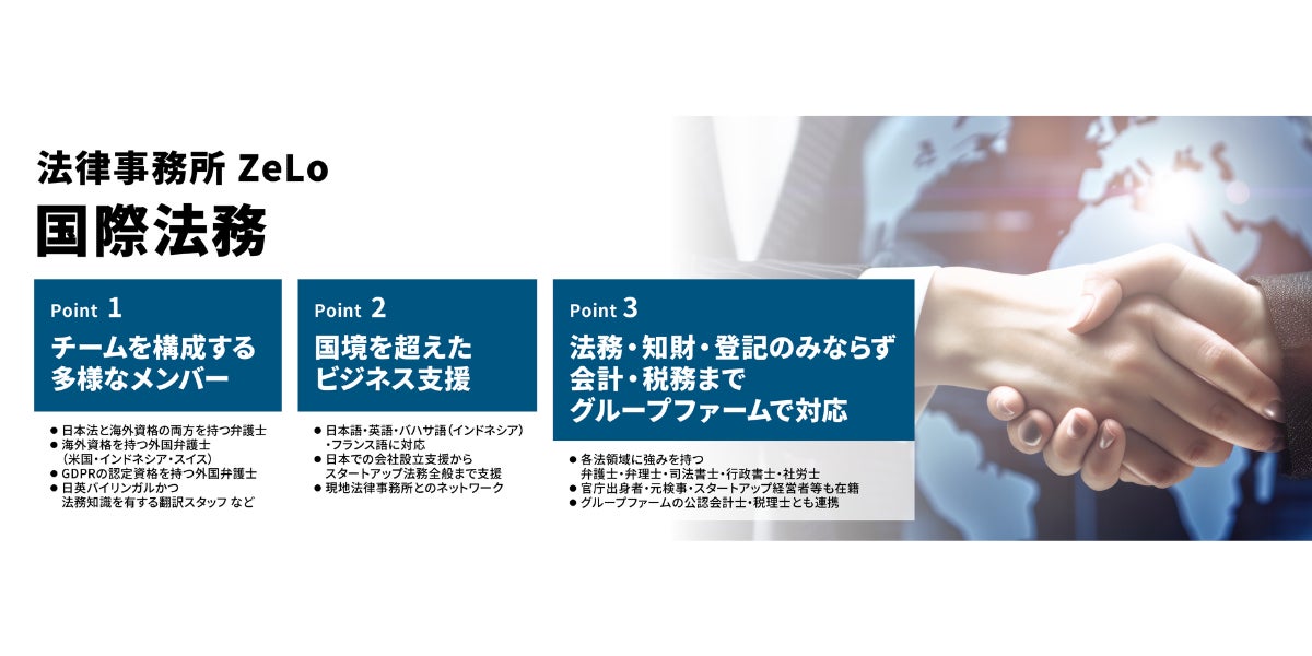 ※上記は国際法務に関する一部抜粋です。実績・サービス詳細などはこちら(https://zelojapan.com/practice/cross-border-practice)をご覧ください。