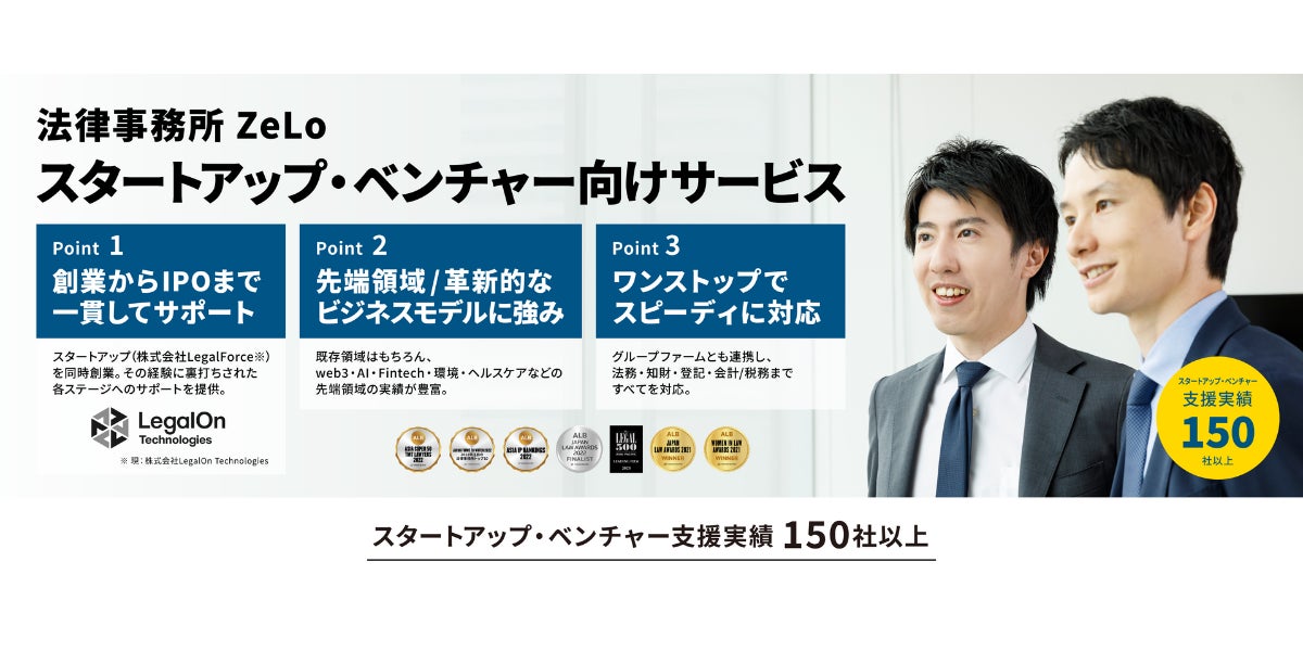 ※スタートアップ支援に関する実績・サービスの詳細などはこちら(https://zelojapan.com/service/startup-venture-law)をご覧ください。