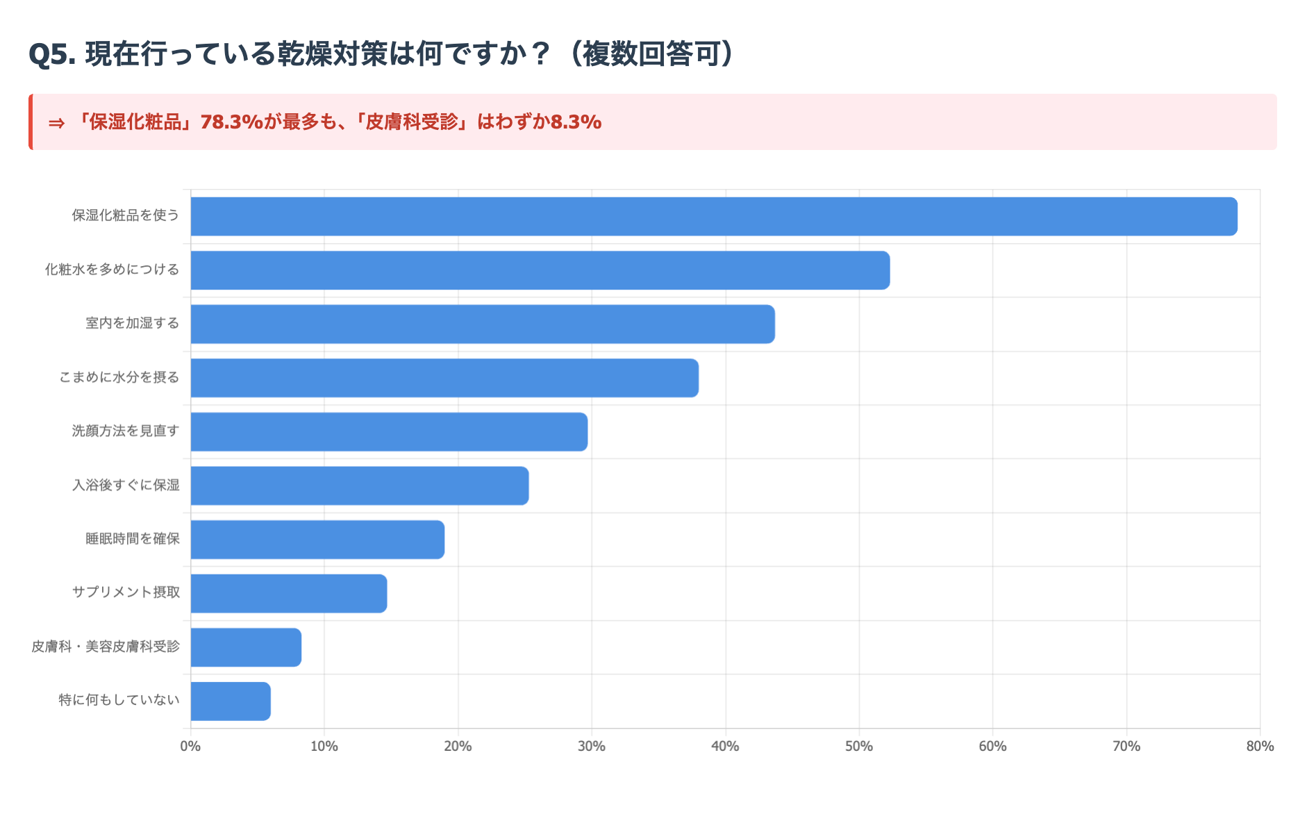 ■乾燥対策は「保湿化粧品」78%が最多も、「皮膚科受診」はわずか8%