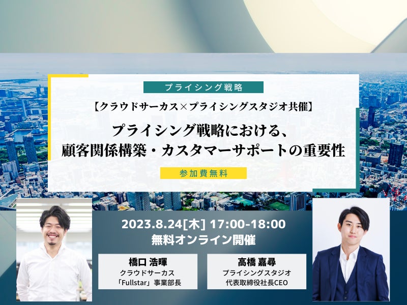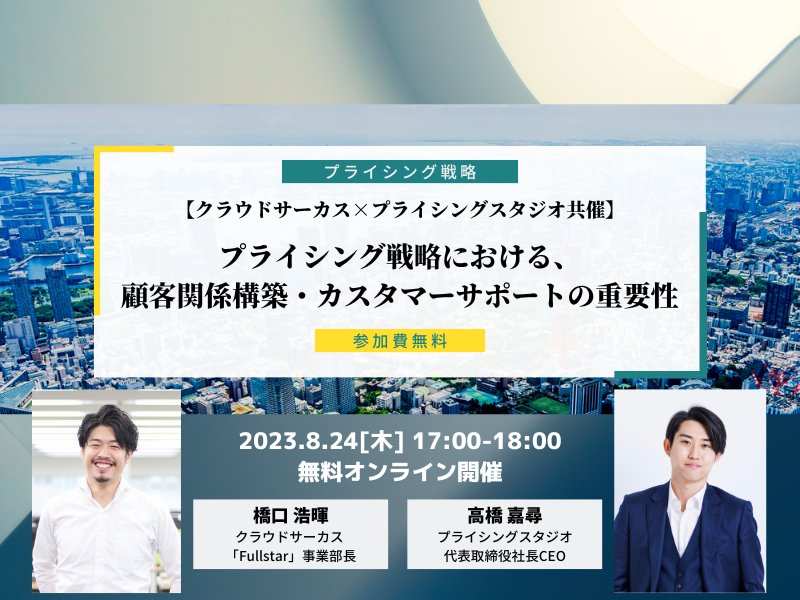 【クラウドサーカス× プライシングスタジオ共催セミナー】 8月24日プライシング戦略における、顧客関係構築・カスタマーサポートの重要性