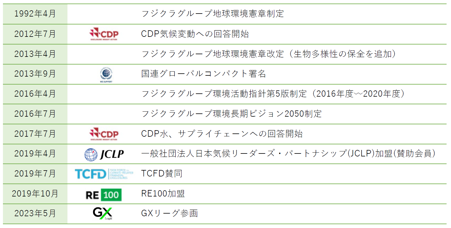■フジクラグループ 気候変動に関する取り組みの経緯