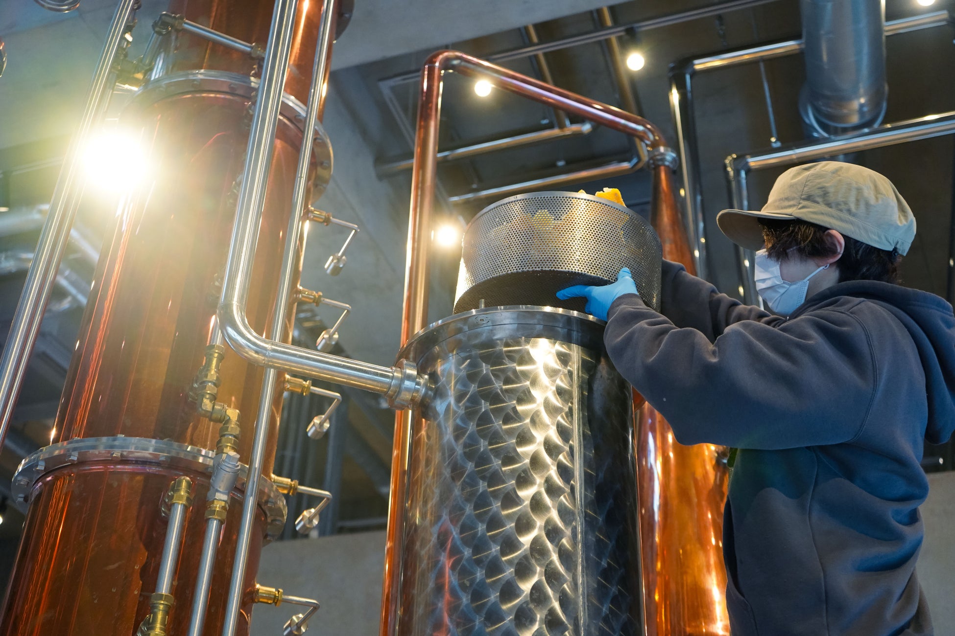 ジュニパーベリーは、通常より量を増やしベーススピリッツに前日から漬け込み、そのまま蒸留することで、風味をより豊かに抽出しています。柚子皮はバスケットにたっぷりと敷き詰め、浸漬せずに蒸気を通して蒸留。