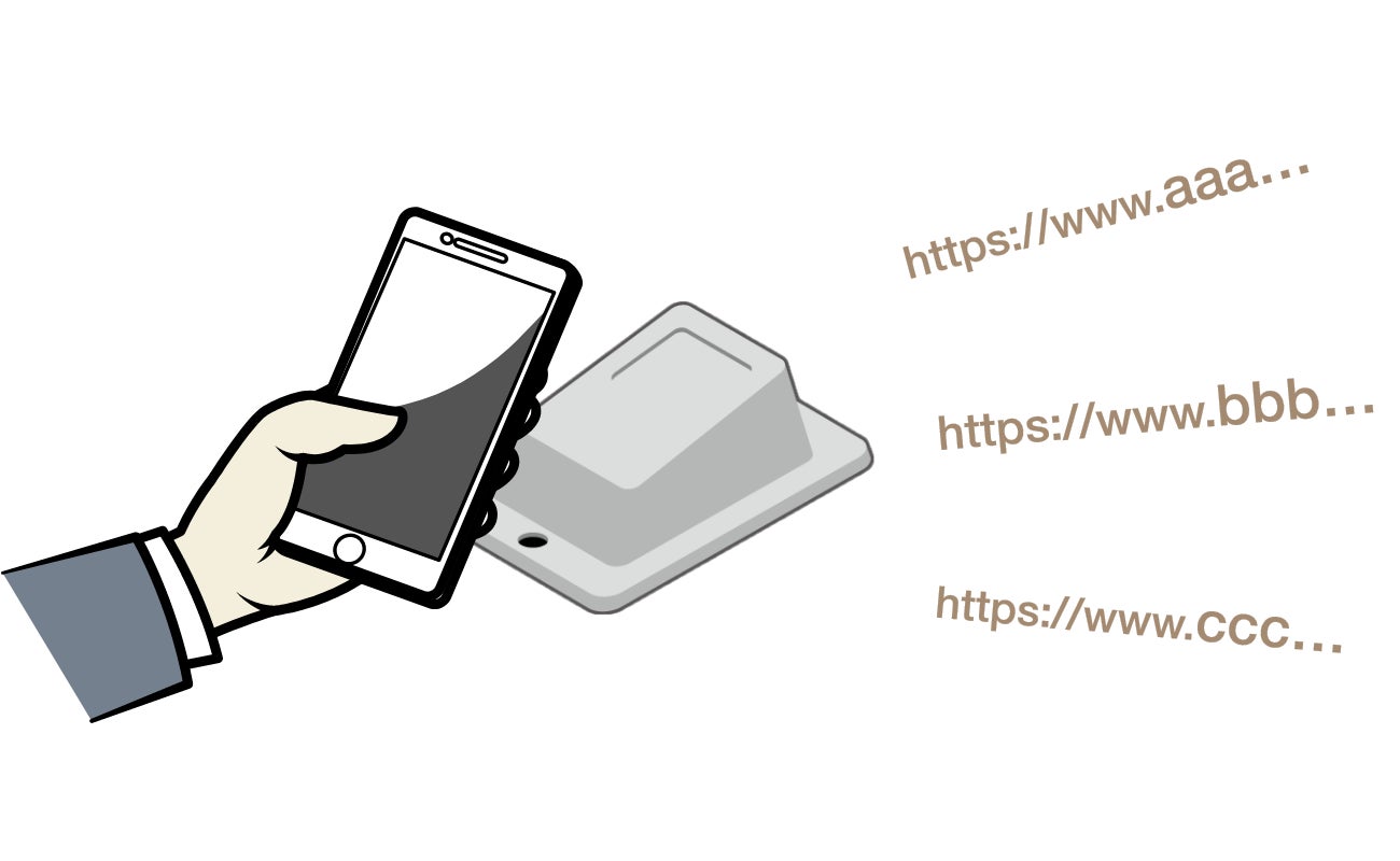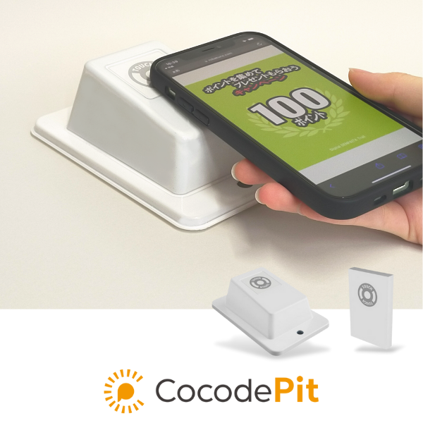 「CocodePit」は NFC(近距離無線通信規格)技術を使ったサービスで、機器にスマートフォンをかざすことでワンタイムでユニークな URL を発行できます。狙いとするターゲットへ情報・インセンティブを届けたい!という WEB キャンペーン市場のニーズに応える新しい機器サービスです。
