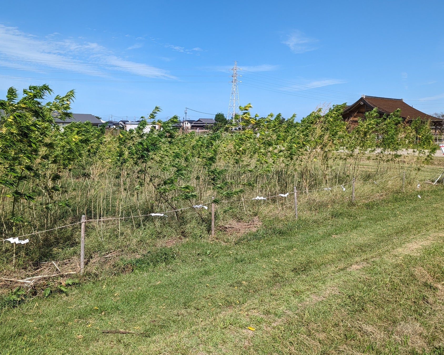 天津菅麻PJが始動した2023年度は、明和町で歴史上麻の栽培があった記録はありはしましたが、栽培の歴史が途絶えて久しく、明和町の気候風土に合わせた栽培方法についてはゼロからのスタートでした。粘土質で水が捌けにくく風の強い明和町の気候下での栽培は、麻が雑草に負けてあまり成長せず台風などの風で倒れてしまい、本来の繊維用の用途としてはほとんど使えませんでした。