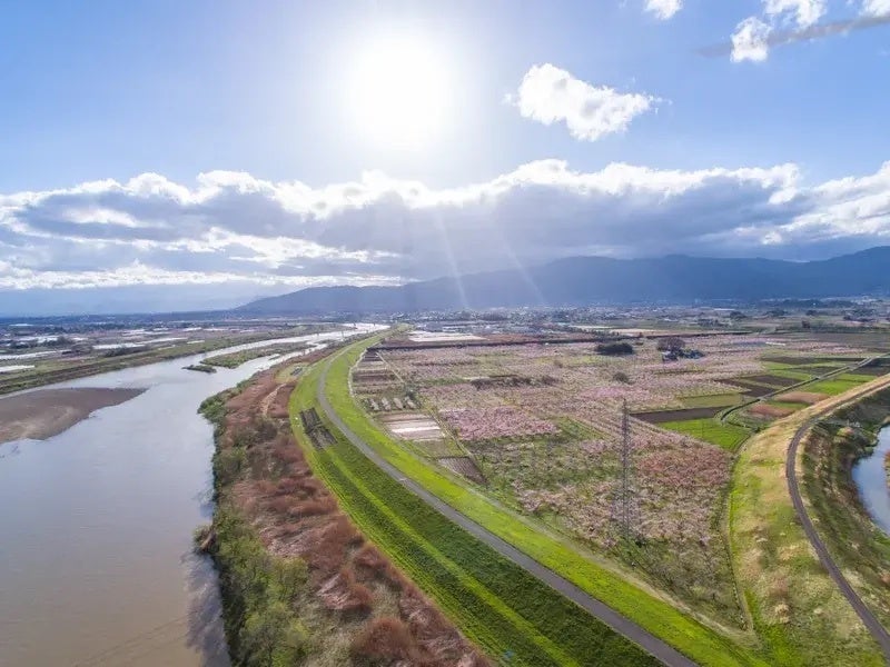 また、盆地特有の寒暖差が大きく、県内で最も日照時間が長い気候条件のもとで、おいしい桃やりんごが育てられています。