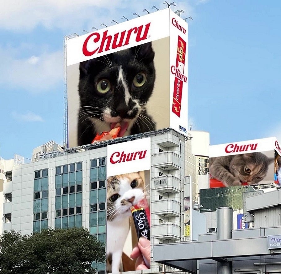 ぜひ、渋谷エリアにお越しの際には、インパクトのある「CIAOちゅ~る」の広告をご覧ください。