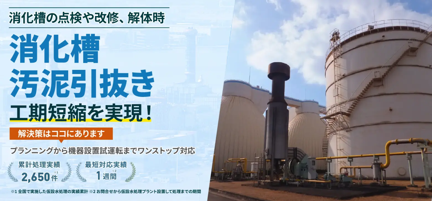平時の予防保全から緊急対応まで、消化槽に関するあらゆる課題に「仮設」というソリューションでお応えします。