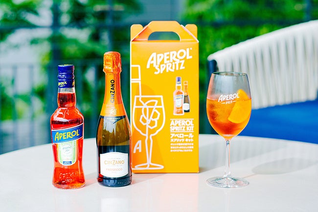 ハーフボトルのアペロール(350ml)とチンザノ プロセッコDOC(375ml)がセットになったスターターキットは、イタリアNo.1カクテル『アペロールスプリッツ』をご⾃宅でより⼿軽に楽しんで頂けます。(¥2,750税込)