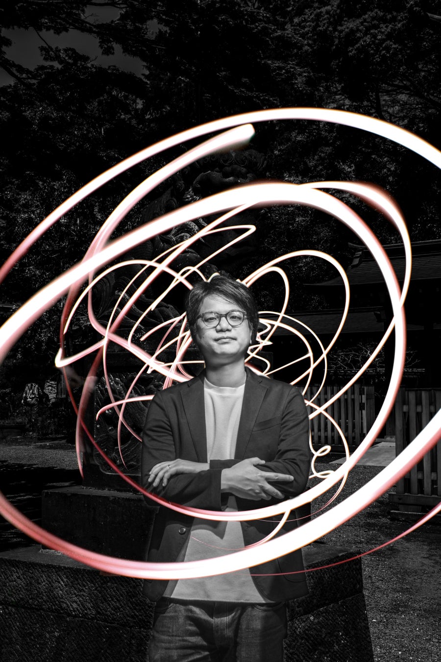 カメラのシャッターを長めに開き、暗い場所でライトを振り回しながら写真を撮ると、光の通った道に線が残ります。この光の線を使って、一筆書きで空中に光る絵を描きます。