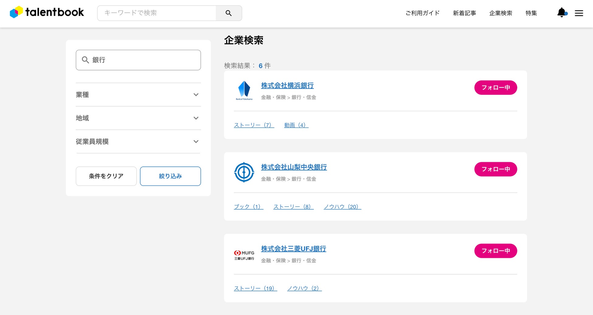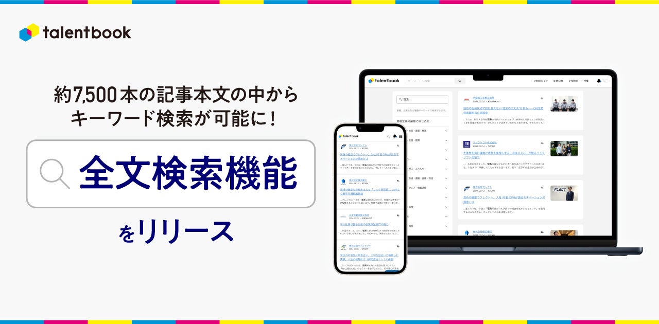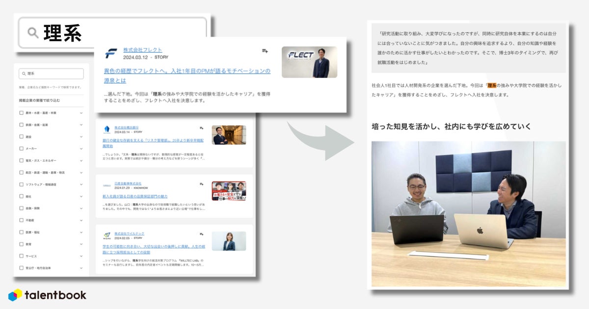 その中で、記事の本文から検索することで、自分の志向とマッチするストーリー・ノウハウを見つけていただきたいという目的で今回のアップデートに至りました。また、talentbook掲載企業を調べたいというニーズに対して、より検索しやすくアップデートを実施しました。