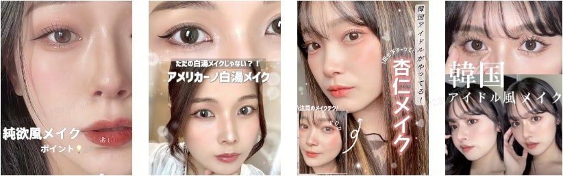 一方、アフターコロナではマスクを外す機会が増えたことにより、メイクに時間をかける人が増加。全体的にナチュラルでありながら、肌の透明感を重視。より目元が華やな「ナチュラルだけど盛れる作り込みすぎないメイク」が人気に。その需要に合ったのが、SNSを中心に広まった人気韓国アイドルのメイクや、中国のインフルエンサーから生まれた「ワンホン(中国)メイク」。Lemon8では「純欲(じゅんよく)メイク」や「白湯(さゆ)メイク」等中国で流行ったメイクをいち早く、多くのLemon8クリエイターが投稿し、多くのバズり投稿が誕生した。
