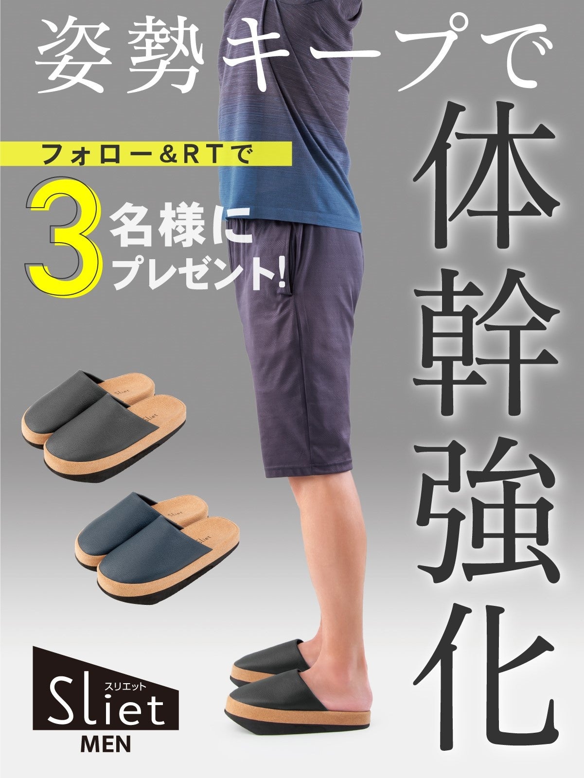 そこで弊社は累計17万足を販売した体幹を整えるスリッパSlietのメンズタイプを父の日に向けてtwitterのキャンペーンを開始致します。