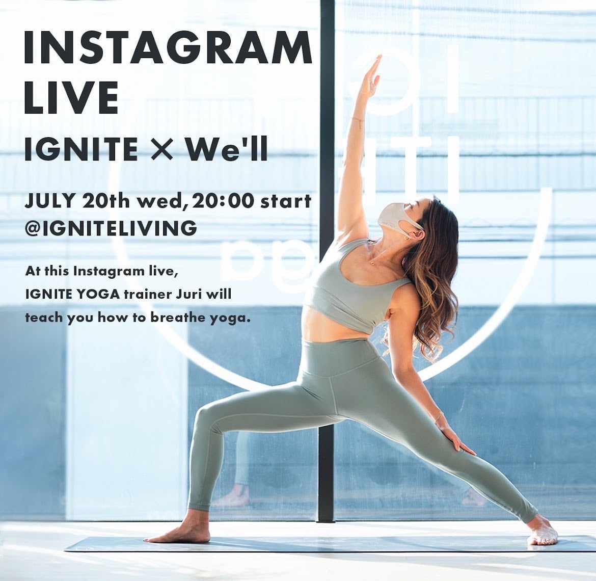 株式会社IGNITE(本社:東京都渋谷区神宮前5-16-13 Six Harajuku Terrace 2F代表取締役:エドワーズ壽里)が運営、主宰するIGNITE YOGA STUDIOは、マスク特化型の人気ライフスタイルブランドWe’llとのコラボレーションマスク”COOL Comfit MASK シングルワイヤー”を販売いたします。また、コラボレーションを記念して、7月20日(水)にエドワーズ壽里とWe’llの公式インスタグラムよりLIVE配信を行います。