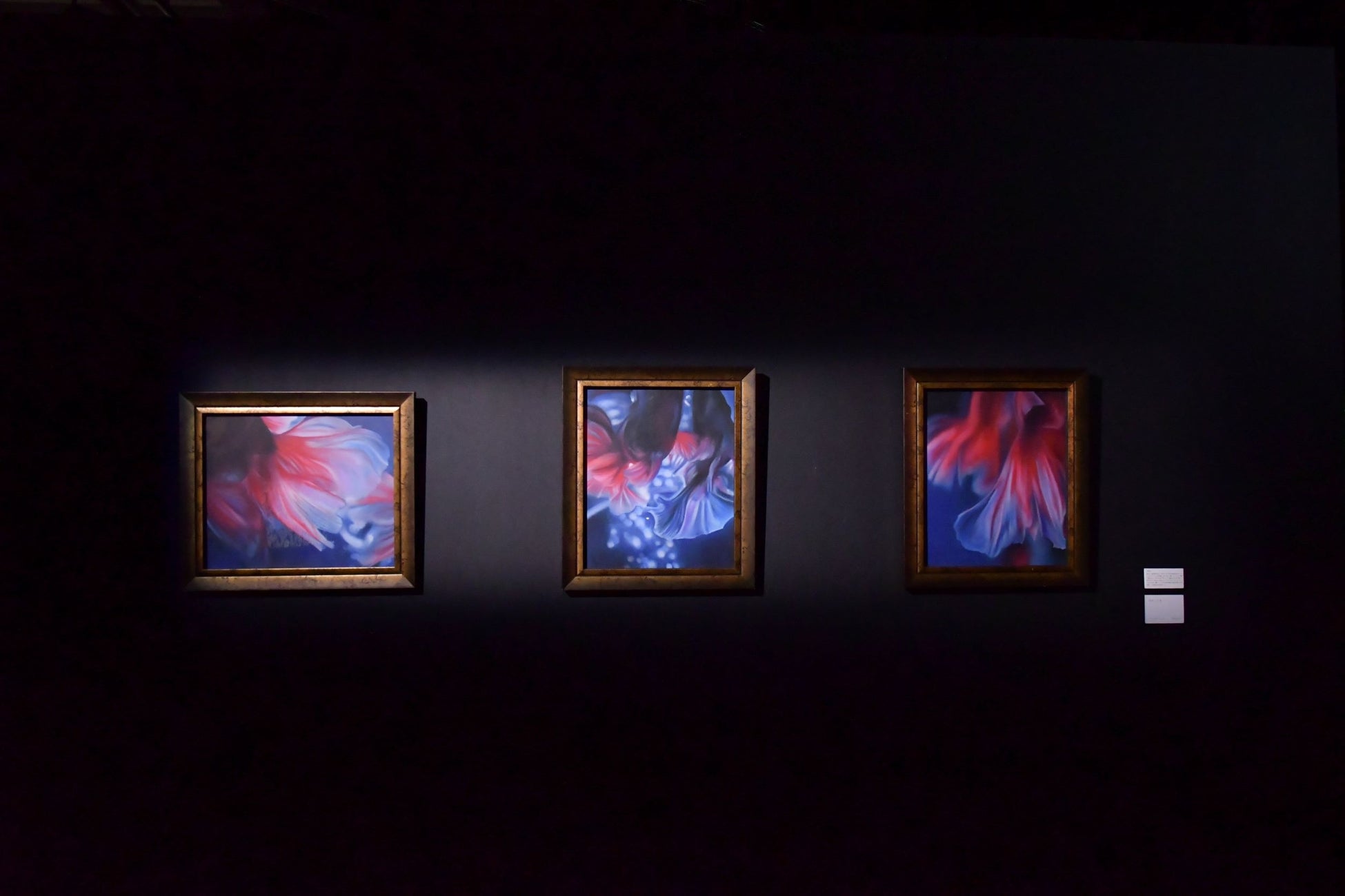 チョークアーティストとしてご活躍されているMoecoさんの作品を展示しています。様々なテーマで作品を描いているMoecoさんですが、当館では金魚を描いた3作品をご鑑賞いただくことができます。チョークで描かれた金魚の尾鰭も躍動感があふれ、その美しさが表現されています。