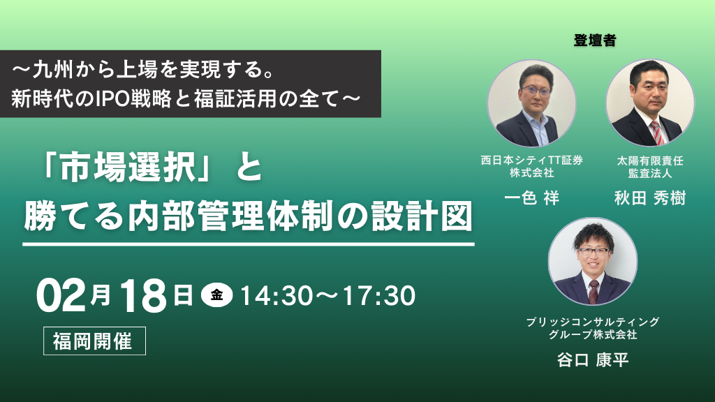 九州から上場を、新時代のIPO戦略と福証活用の全て。「市場選択」と、勝てる内部管理体制の設計図セミナーを2/18福岡で開催