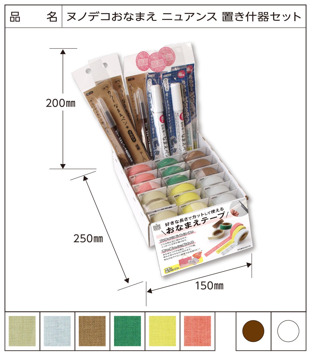 置き型什器 / おなまえ見本サンプル / POP /ヌノデコテープ6種類×各3個 / なまえペン2種類×各3個