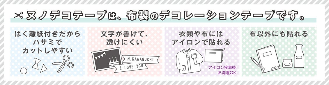 ”布に貼れる、布のテープ”【ヌノデコテープ】