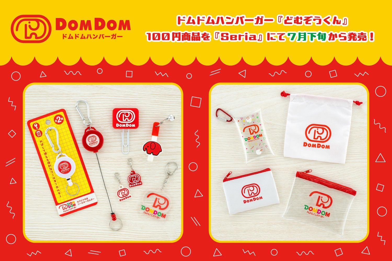 株式会社エイコー(本社:東京都墨田区)は、100円ショップ『Seria』にてドムドムハンバーガー『どむぞうくん』オリジナル商品を7月下旬より順次展開することをお知らせいたします。