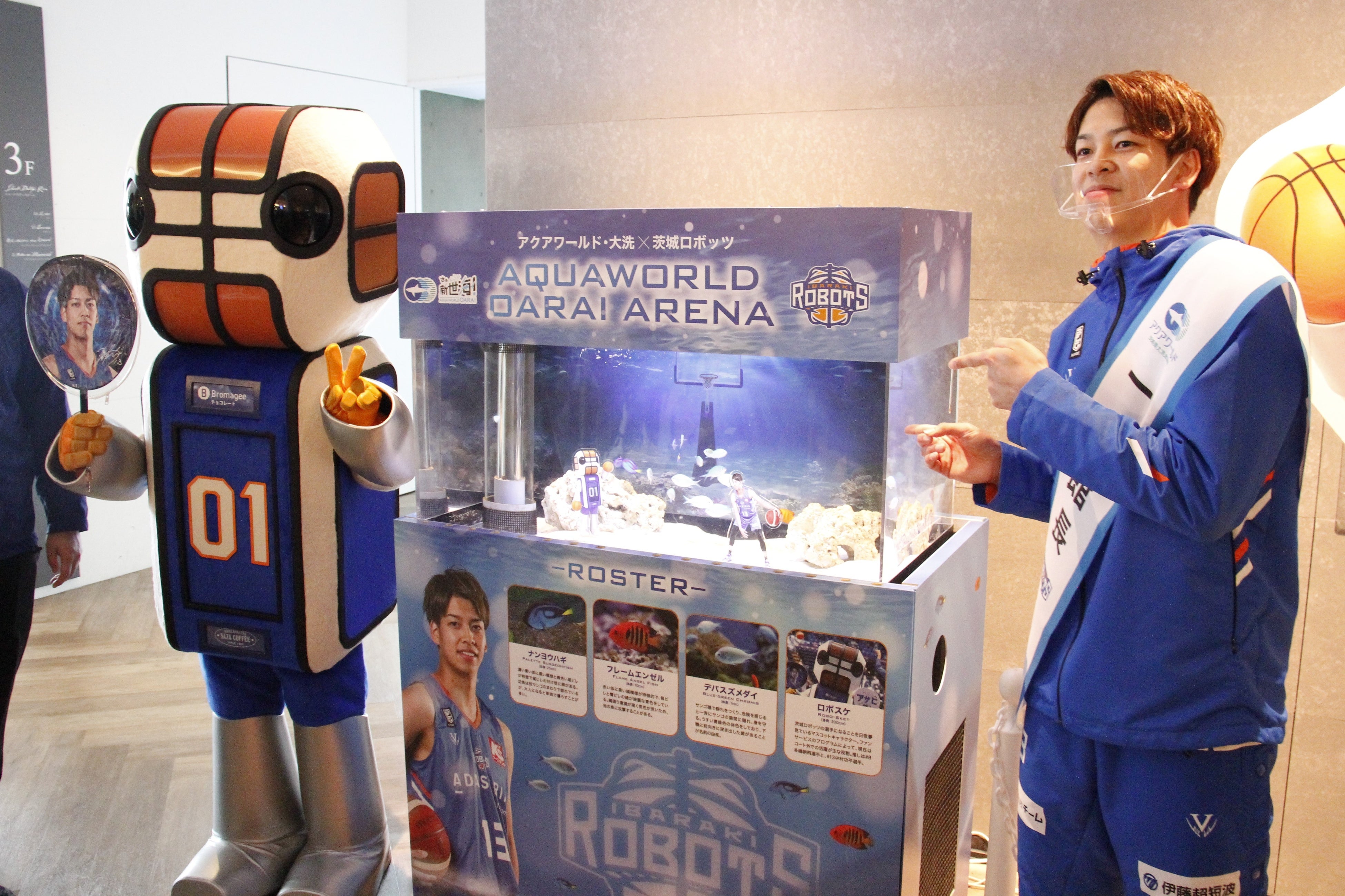 【アクアワールド茨城県大洗水族館】アクアワールド・大洗×茨城ロボッツ『AQUAWORLD OARAI ARENA』駒沢 颯 選手が一日館長就任!水族館とバスケットボールのコラボレーション