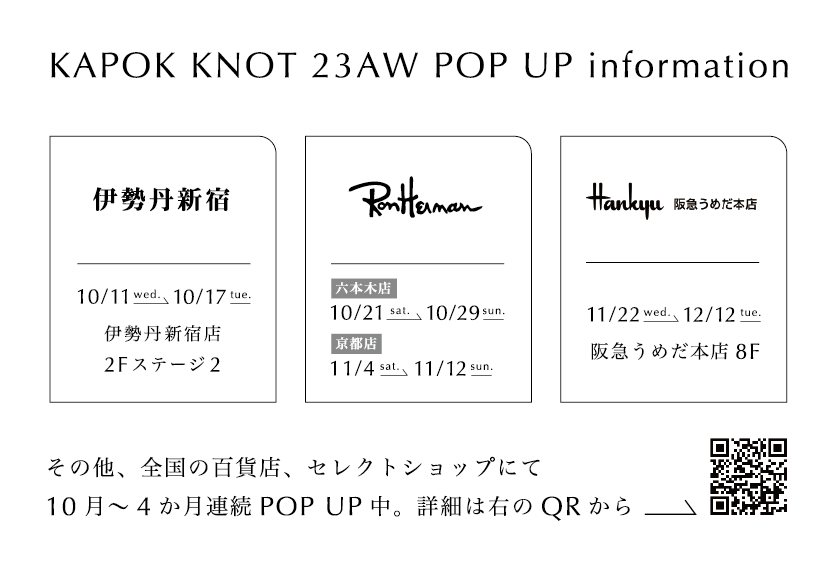 KAPOK KNOT 自社オンラインストア:2023年10月25日(水)〜 ※数量限定