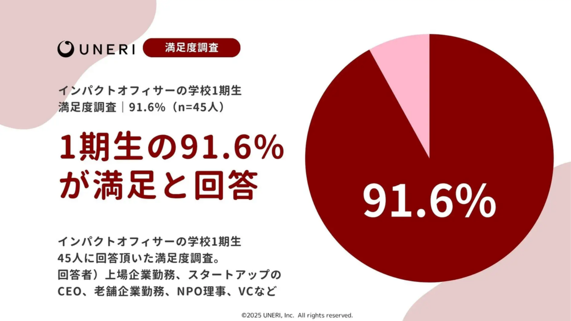 株式会社UNERI(愛知県名古屋市、代表取締役CEO:河合将樹)は、インパクトを事業・経営に統合する次世代人材を育成するプログラム「インパクトオフィサーの学校 第2期」 後期(実践編)プログラムの受講生募集を開始しました。