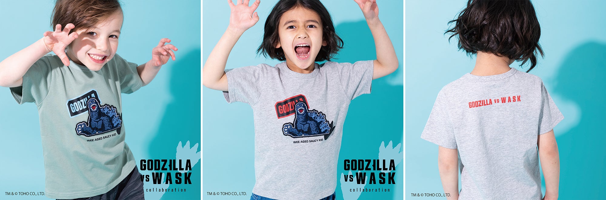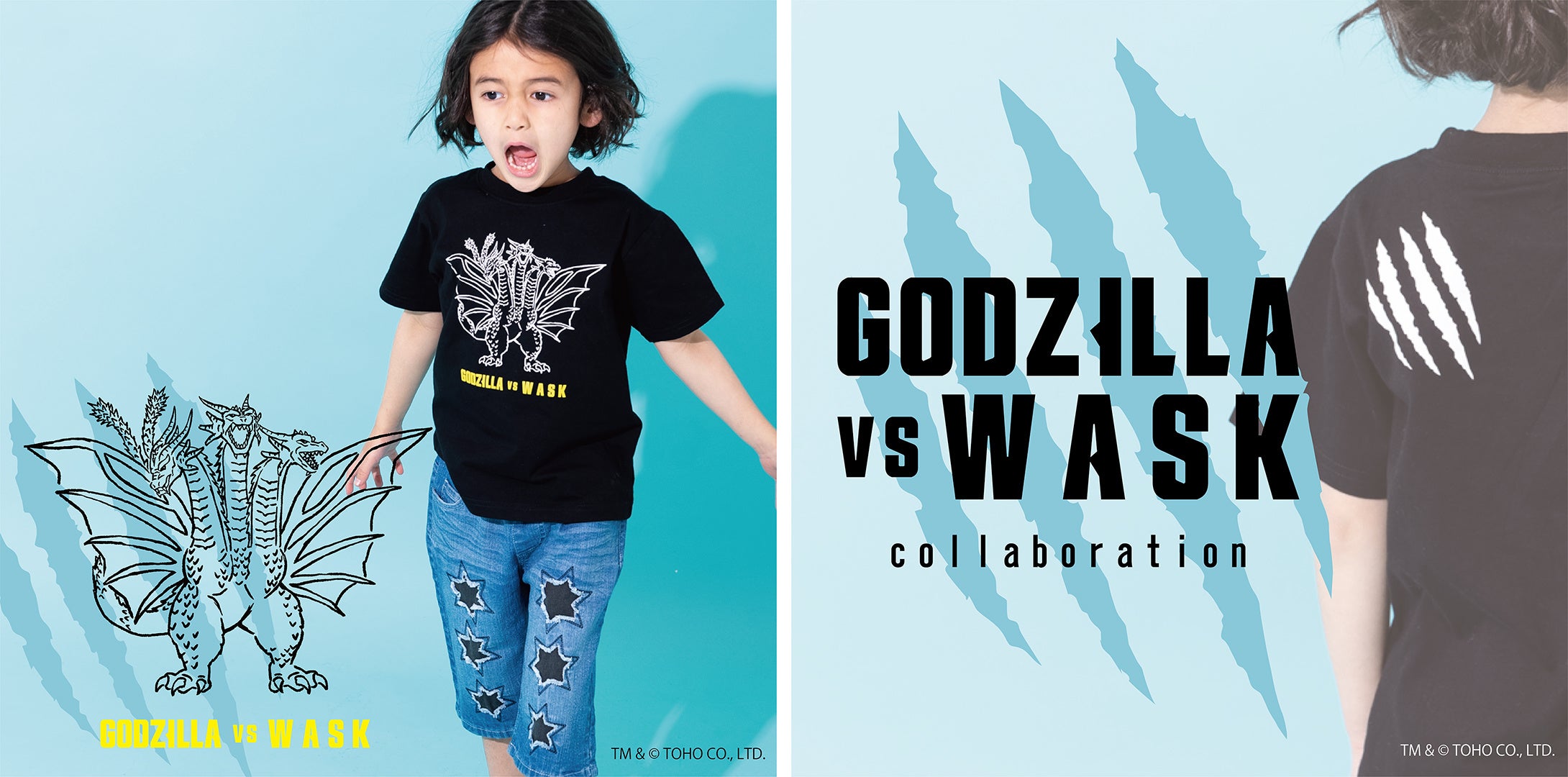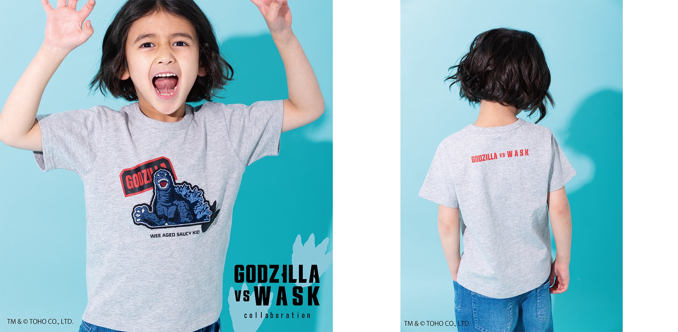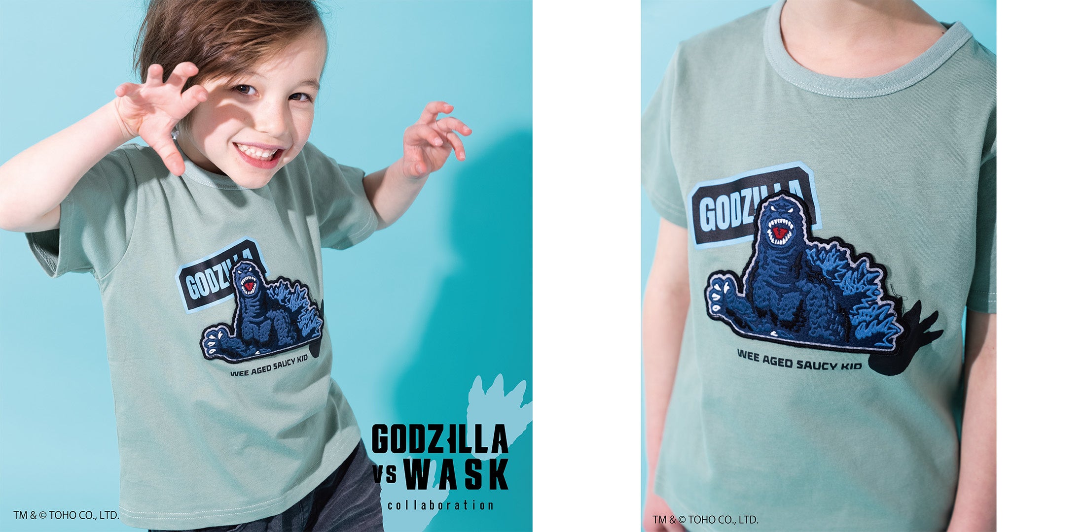 自由で遊び心満載なカジュアルスタイルをご提案するジュニアサイズのボーイズブランドWASK(ワスク)から『ゴジラ』のコラボ商品を3月18日(金)より発売スタート。