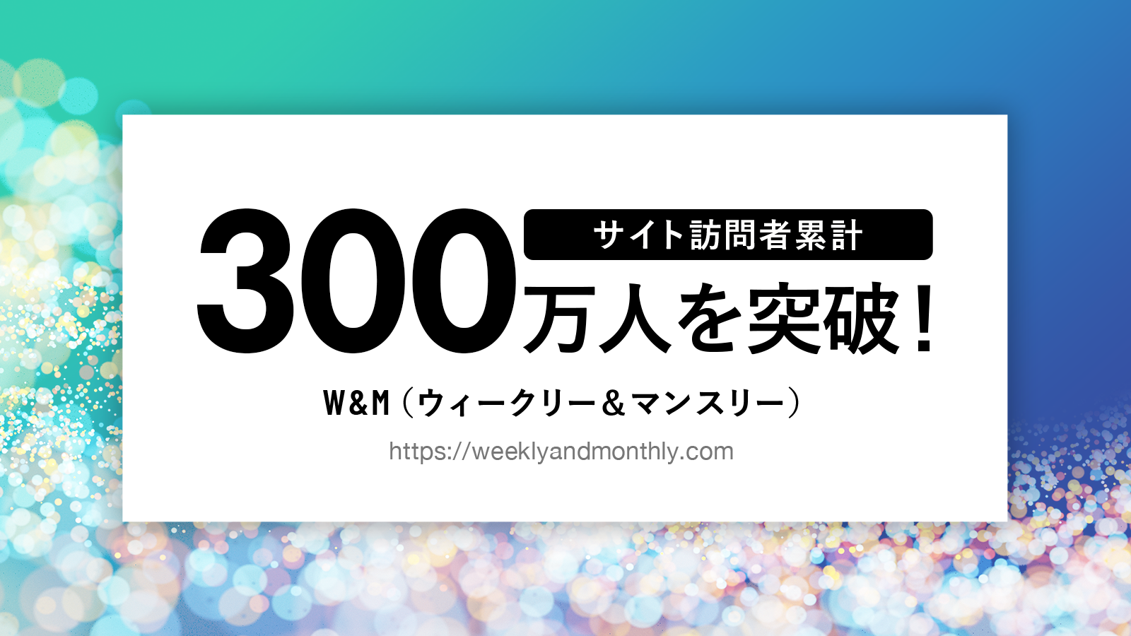 全国のウィークリー・マンスリーマンションの検索サイト「W&M(ウィークリー&マンスリー)」(URL:https://weeklyandmonthly.com、運営:Weekly&Monthly株式会社、本社:北海道札幌市北区、代表取締役:黒木 健次郎)のサイト訪問者数が、2019年7月正式リリースより累計300万人を突破しました。また、ランドマーク検索機能も実装し、更に使いやすいサイトになりました。
