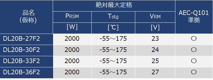 23V~27Vの幅広い耐圧により、対応する規格に適した製品を選定可能
